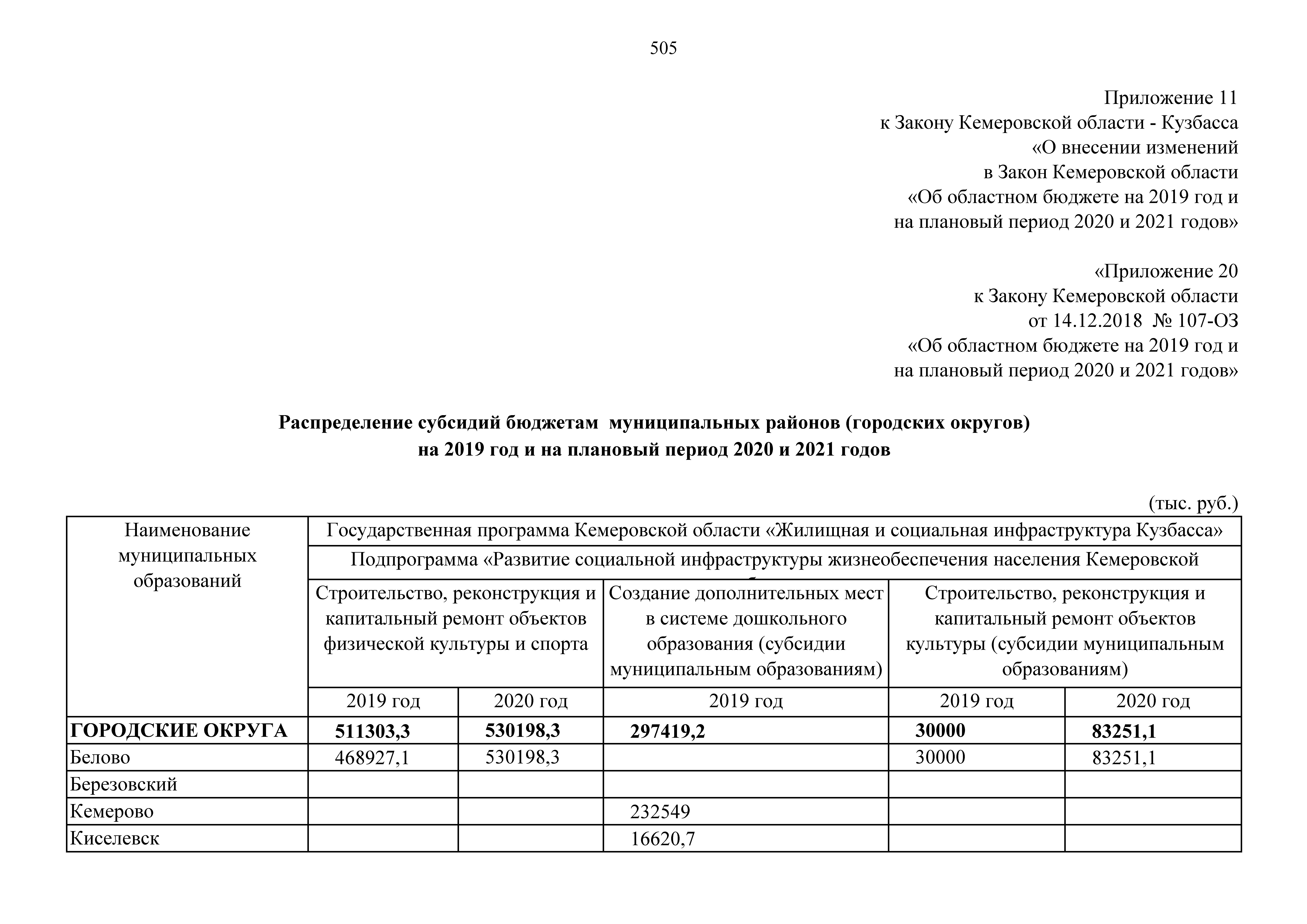 "О внесении изменений в Закон Кемеровской области "Об областном бюджете на 2019 год и на плановый период 2020 и 2021 годов"