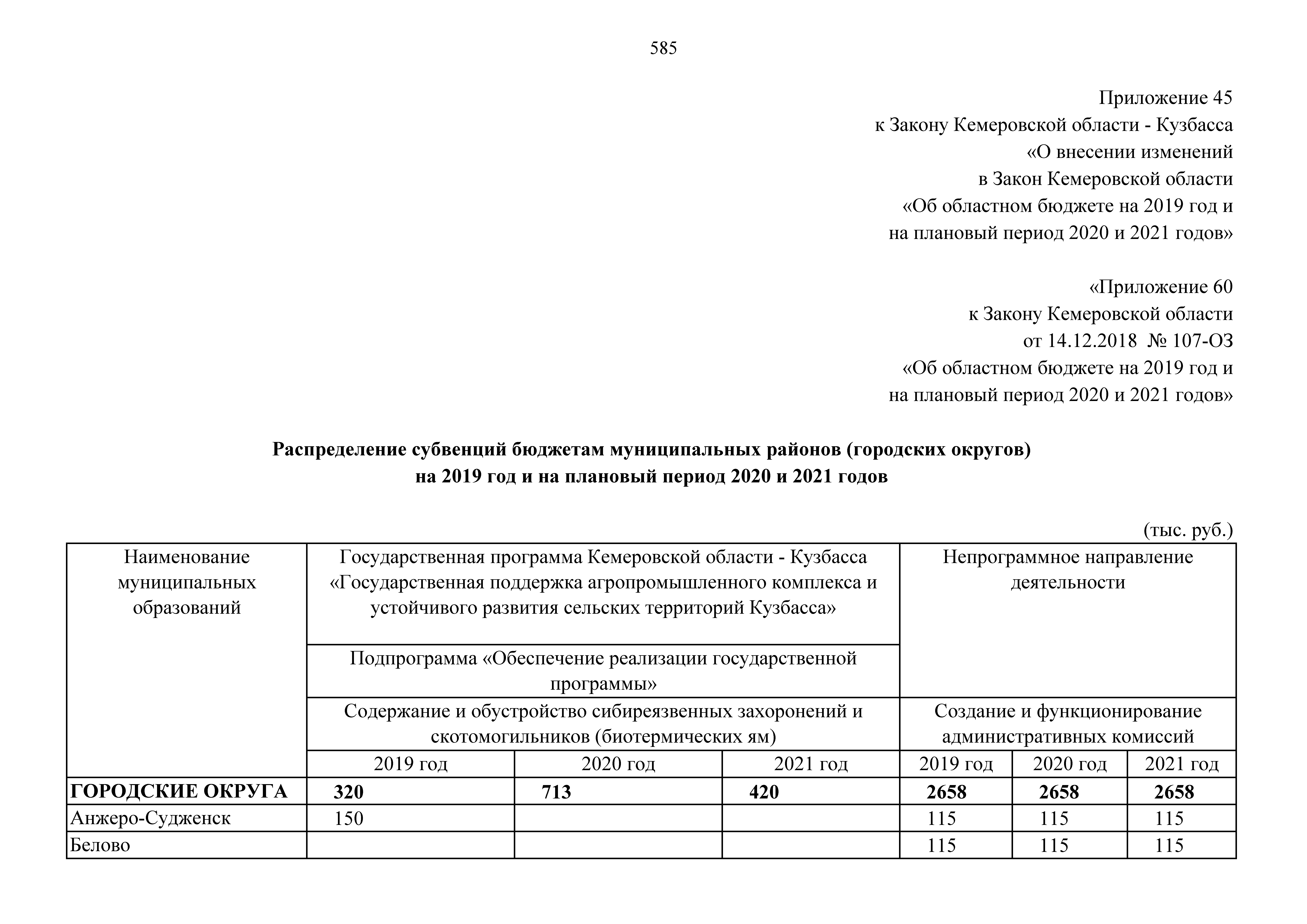 "О внесении изменений в Закон Кемеровской области "Об областном бюджете на 2019 год и на плановый период 2020 и 2021 годов"