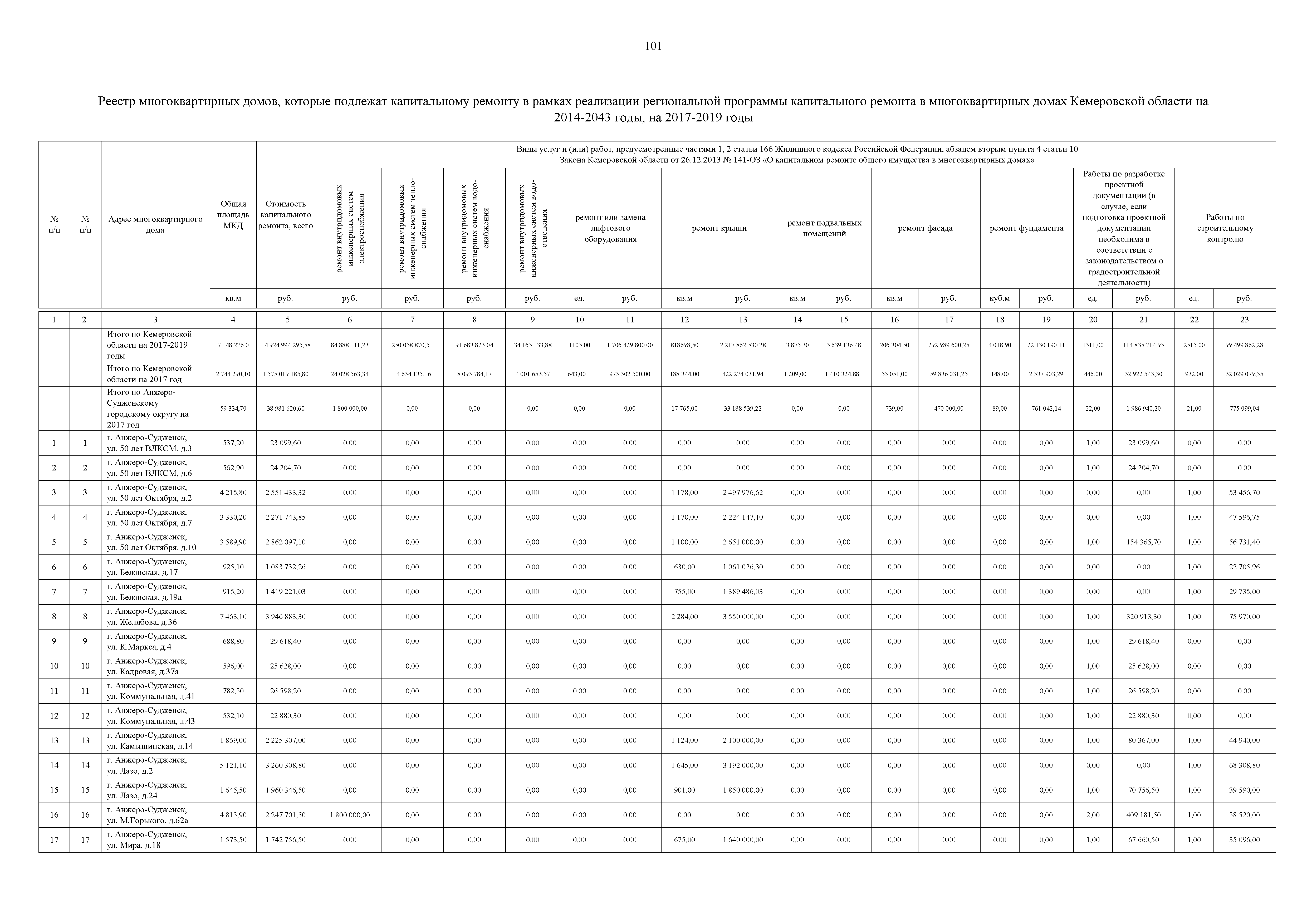 "О внесении изменения в постановление Коллегии Администрации Кемеровской области от 01.12.2016 № 482 "Об утверждении краткосрочного плана реализации региональной программы капитального ремонта общего имущества в многоквартирных домах Кемеровской области на 2014 - 2043 годы на 2017-2019 годы"