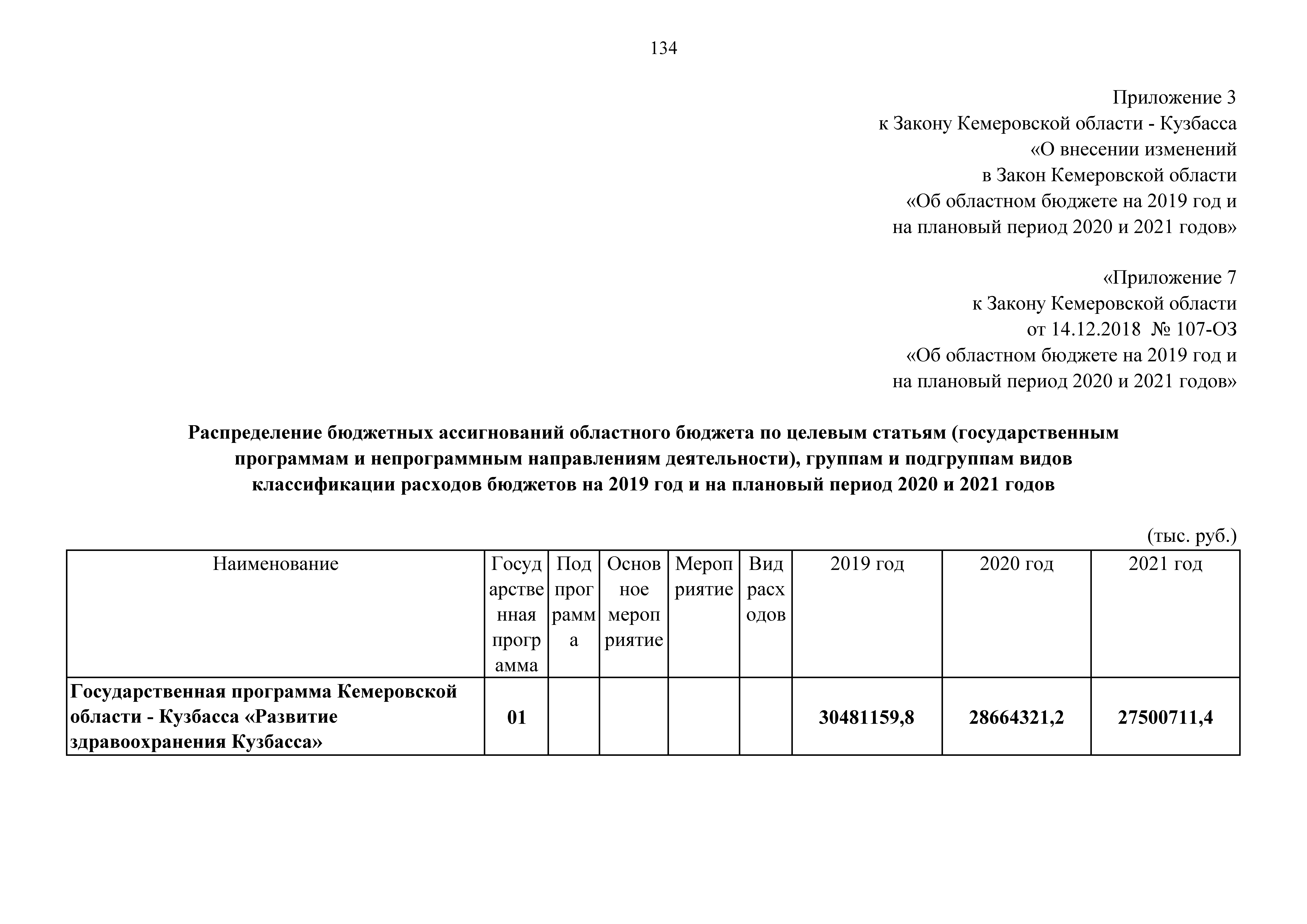 "О внесении изменений в Закон Кемеровской области "Об областном бюджете на 2019 год и на плановый период 2020 и 2021 годов"