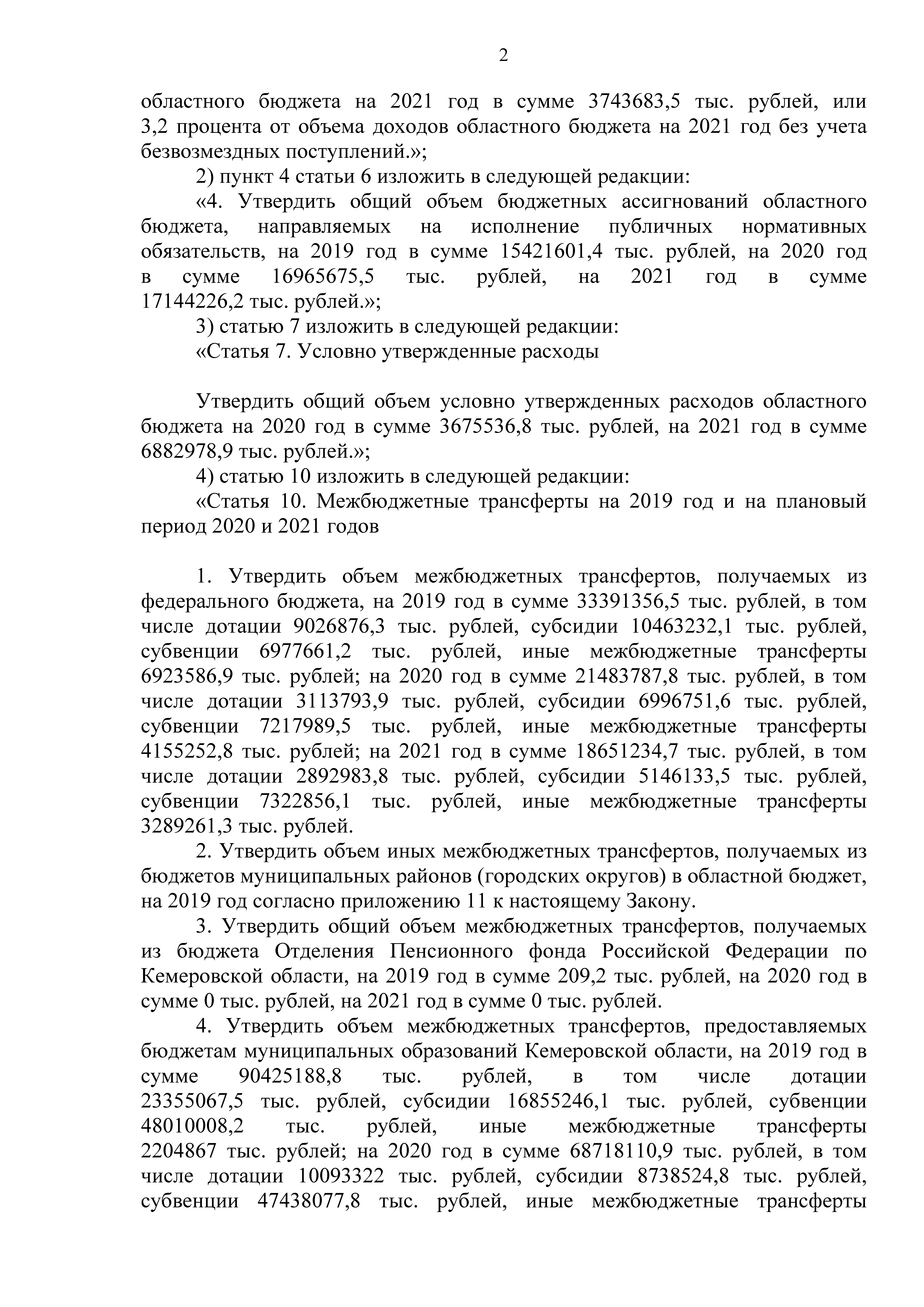 "О внесении изменений в Закон Кемеровской области "Об областном бюджете на 2019 год и на плановый период 2020 и 2021 годов"