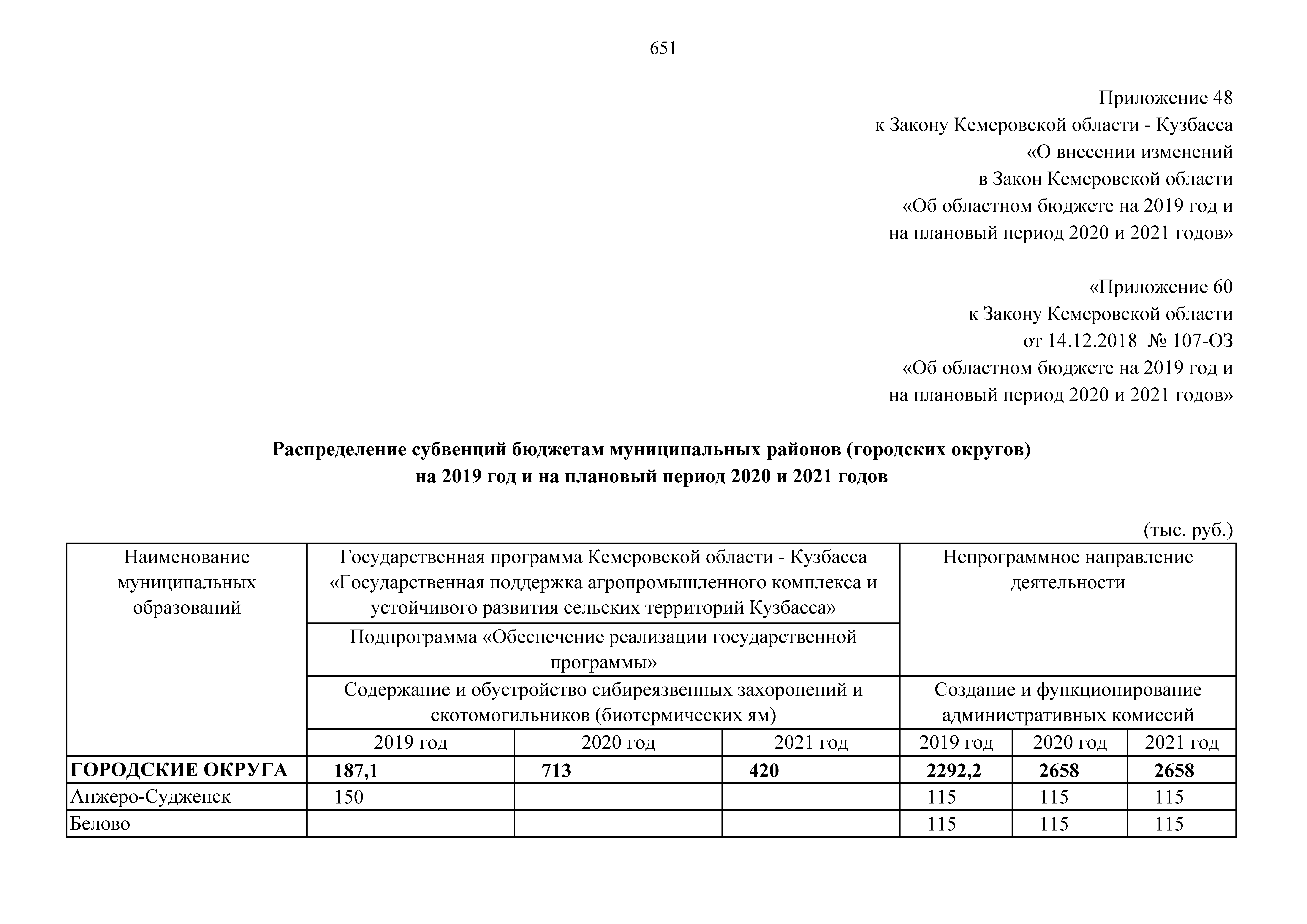 "О внесении изменений в Закон Кемеровской области "Об областном бюджете на 2019 год и на плановый период 2020 и 2021 годов"