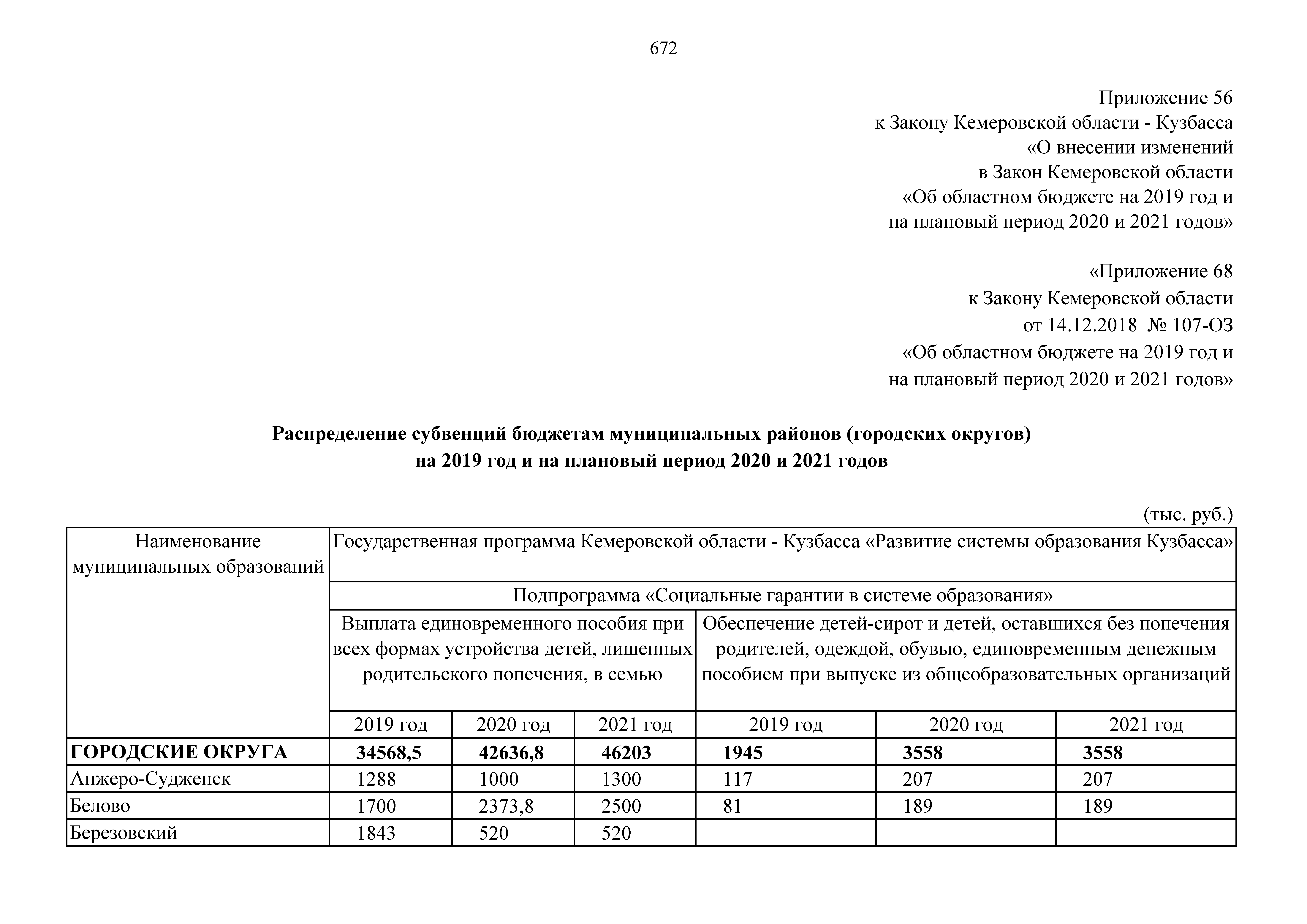 "О внесении изменений в Закон Кемеровской области "Об областном бюджете на 2019 год и на плановый период 2020 и 2021 годов"