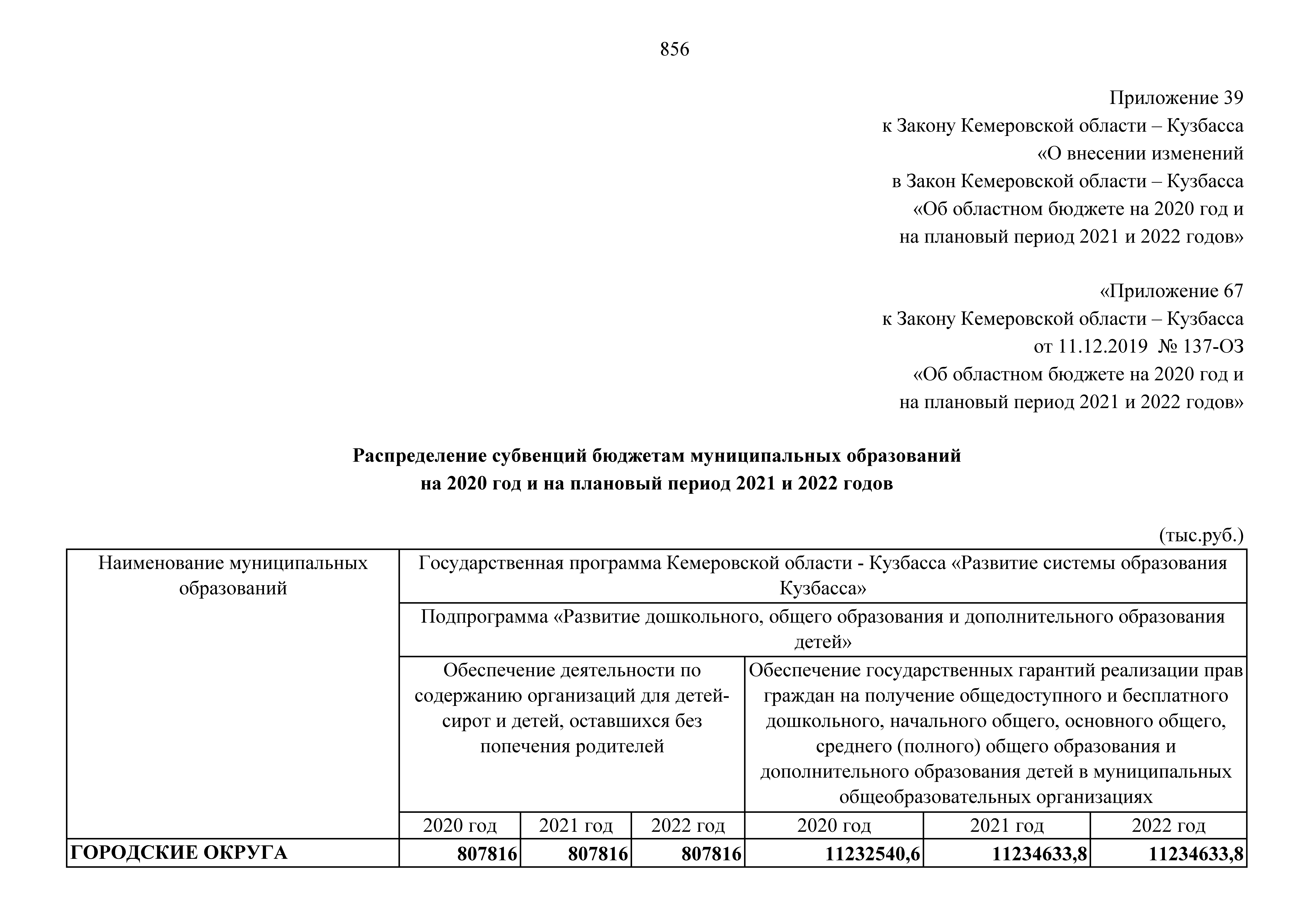 "О внесении изменений в Закон Кемеровской области – Кузбасса "Об областном бюджете на 2020 год и на плановый период 2021 и 2022 годов"