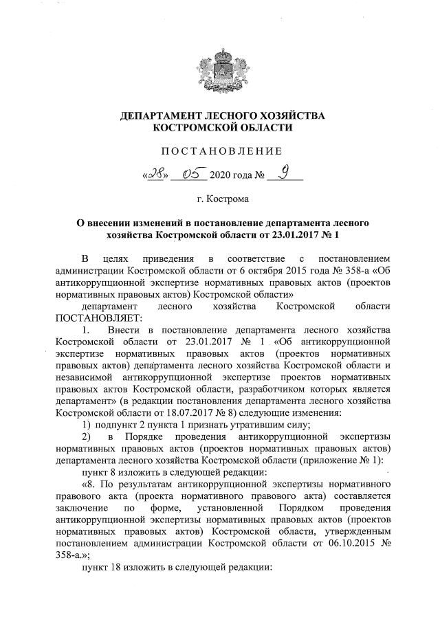 Постановление Департамента лесного хозяйства Костромской области от 28.05.2020 № 9