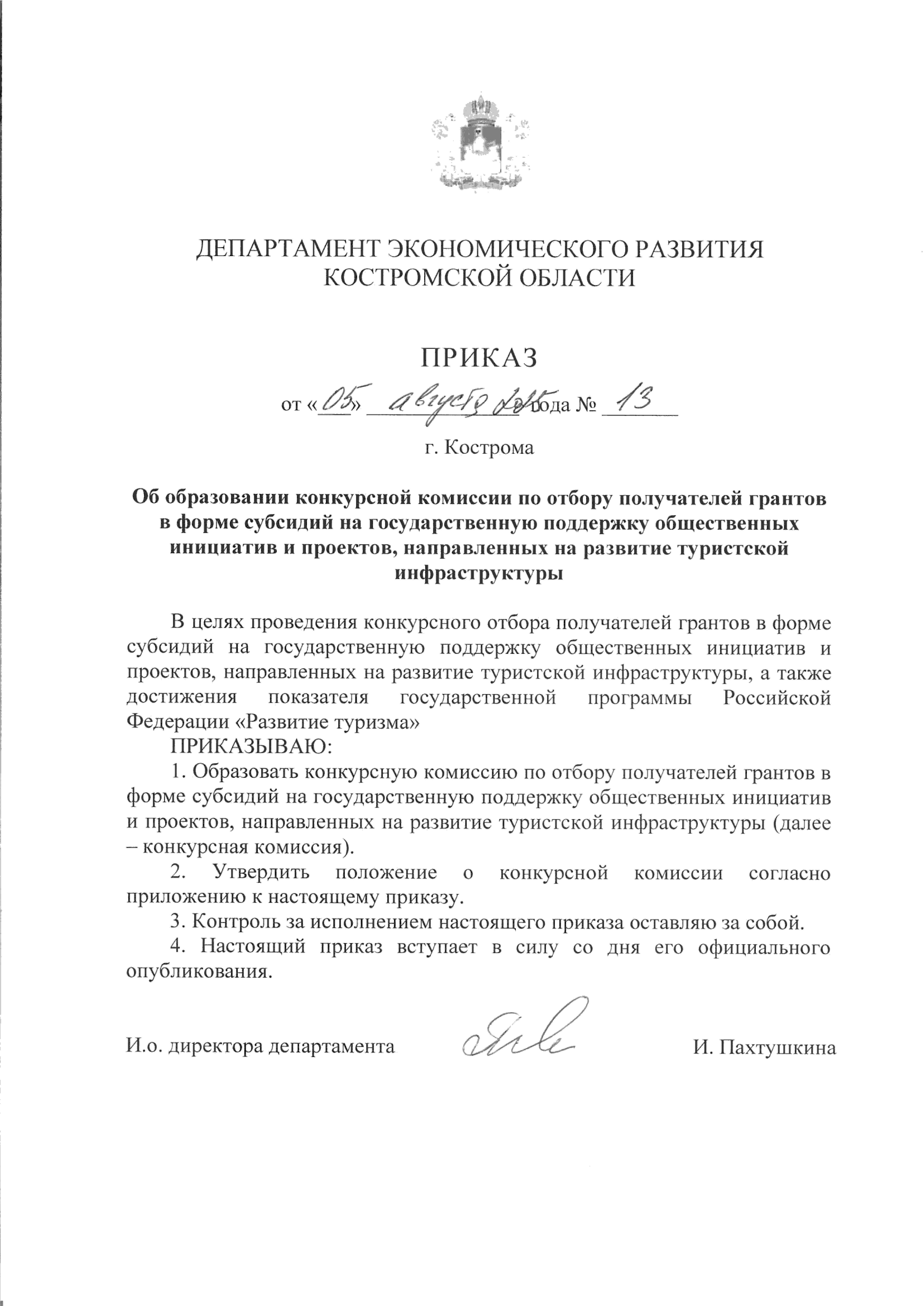 Приказ департамента экономического развития Костромской области от 05.08.2025 № 13