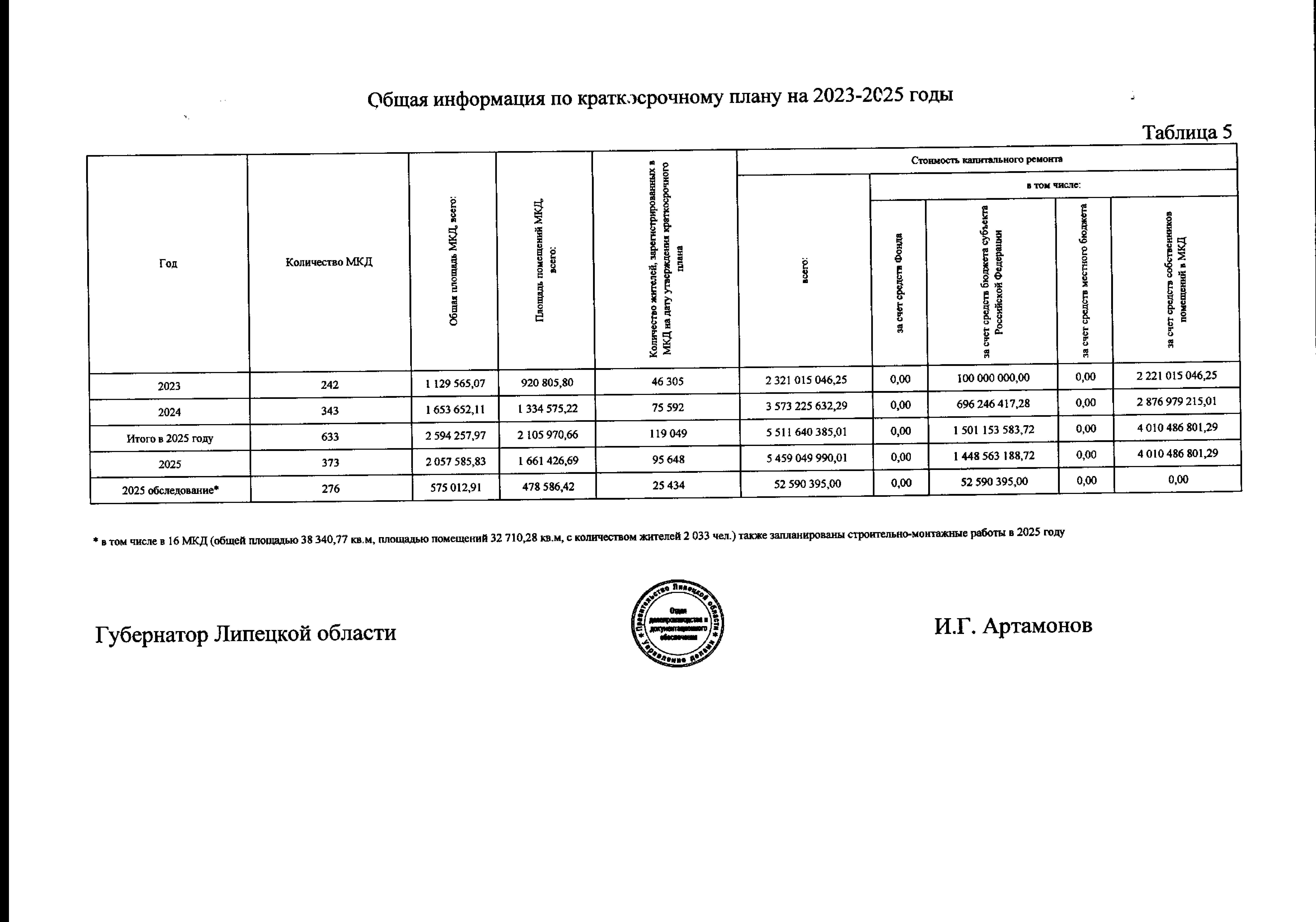 Постановление Правительства Липецкой области от 22.09.2025 № 461 "О внесении изменения в постановление Правительства Липецкой области от 9 марта 2023 года № 111 "Об утверждении краткосрочного плана реализации областной программы капитального ремонта общего имущества в многоквартирных домах на 2023 — 2025 годы"