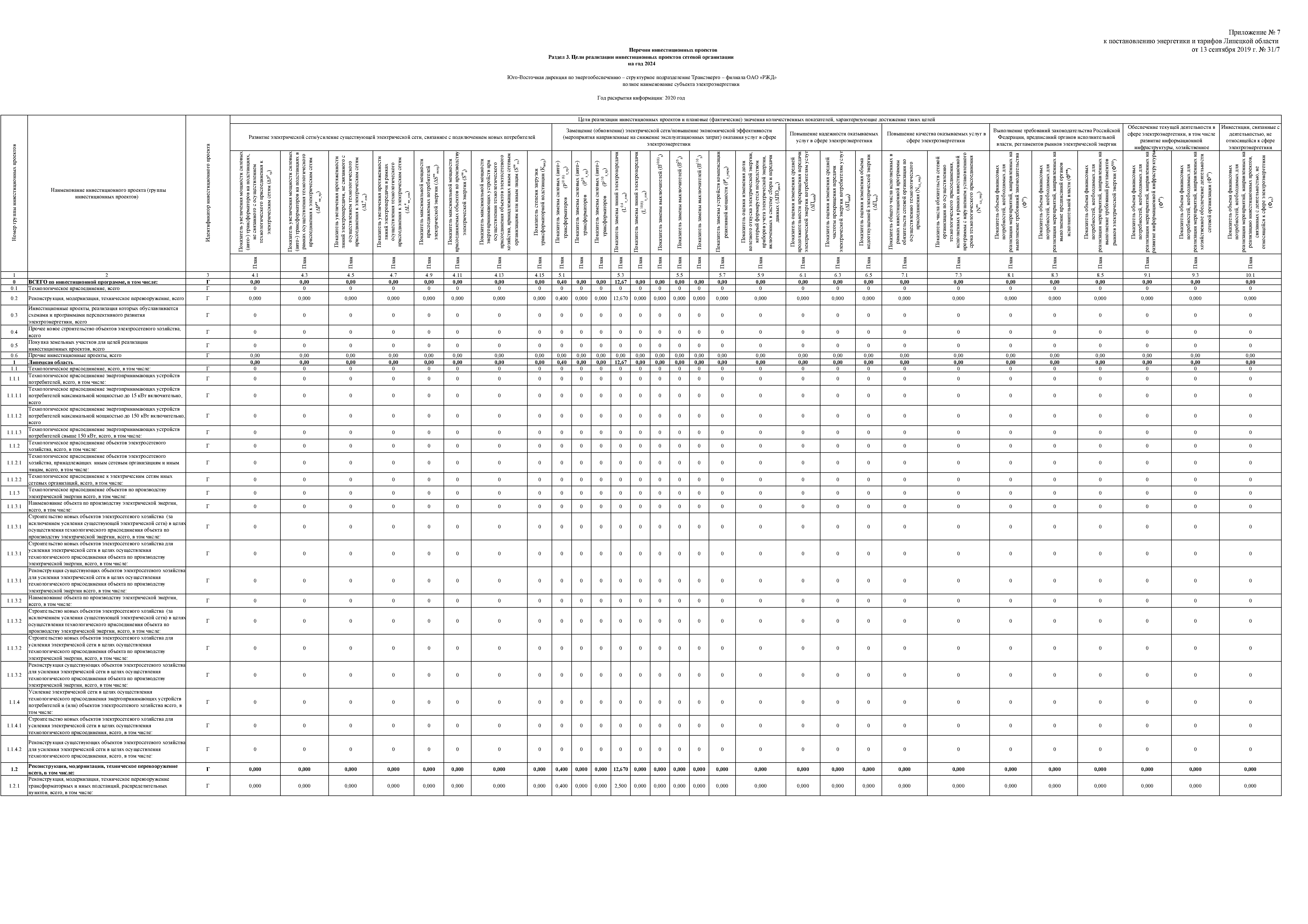 "Об утверждении инвестиционной программы ОАО "Российские железные дороги" (Юго-Восточная дирекция по энергообеспечению - структурное подразделение "Трансэнерго" - филиала "Российские железные дороги" на территории Липецкой области) на 2020-2024 годы"