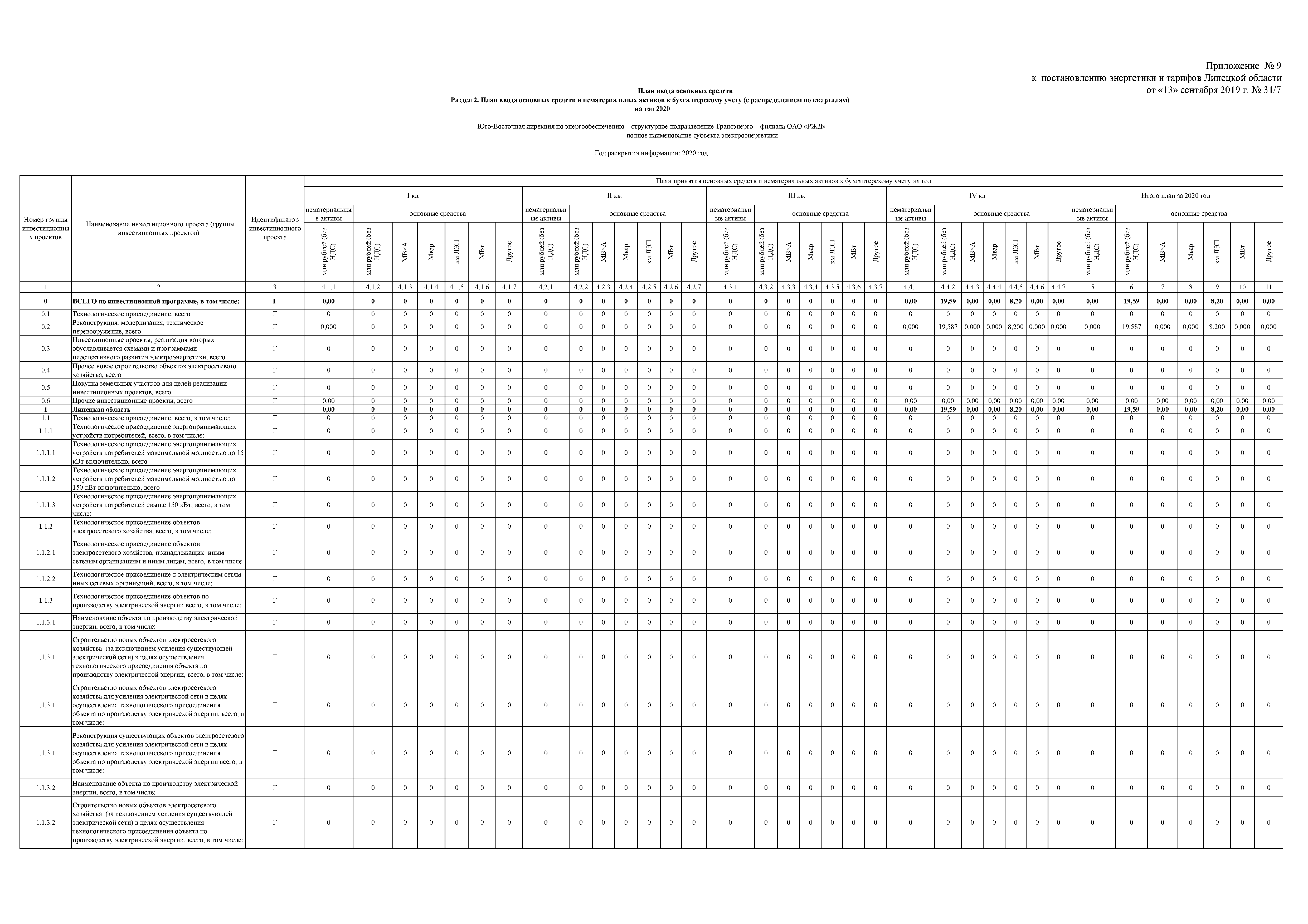 Постановление Управления энергетики и тарифов Липецкой области от 13.09.2019 № 31/7