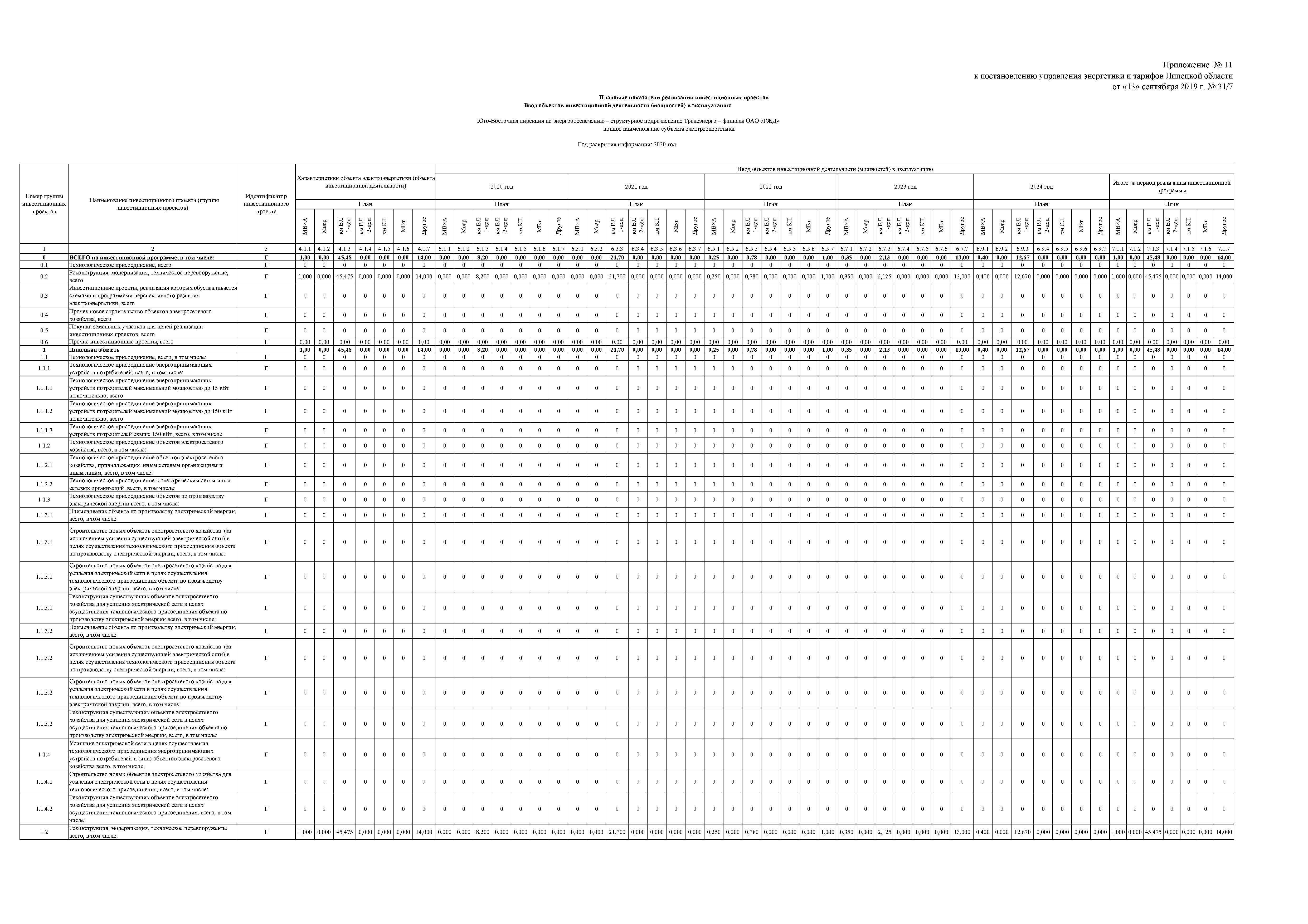 "Об утверждении инвестиционной программы ОАО "Российские железные дороги" (Юго-Восточная дирекция по энергообеспечению - структурное подразделение "Трансэнерго" - филиала "Российские железные дороги" на территории Липецкой области) на 2020-2024 годы"