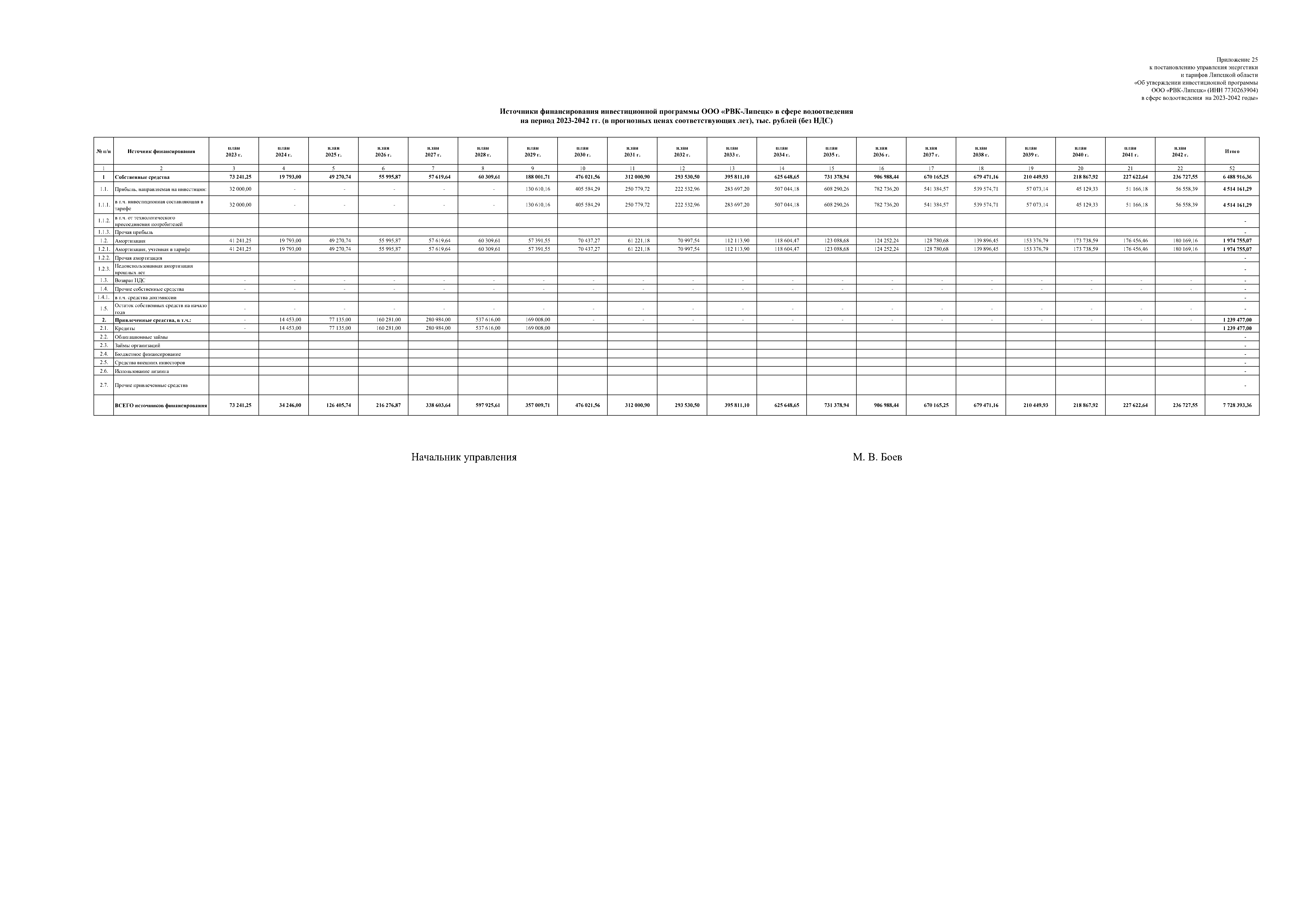 "Об утверждении инвестиционной программы ООО "РВК-Липецк" (ИНН 7730263904) в сфере водоотведения на 2023-2042 годы"