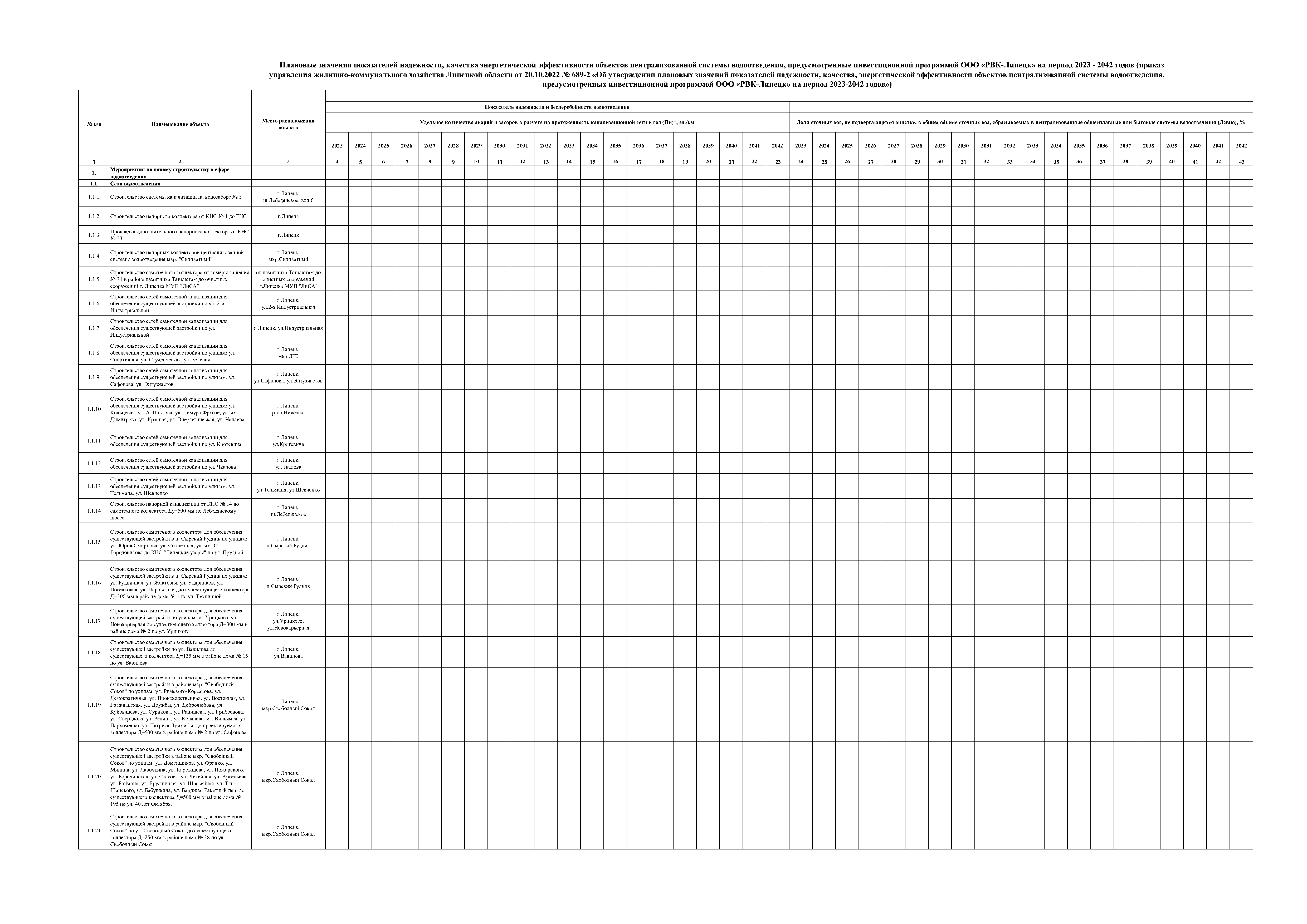 "Об утверждении инвестиционной программы ООО "РВК-Липецк" (ИНН 7730263904) в сфере водоотведения на 2023-2042 годы"