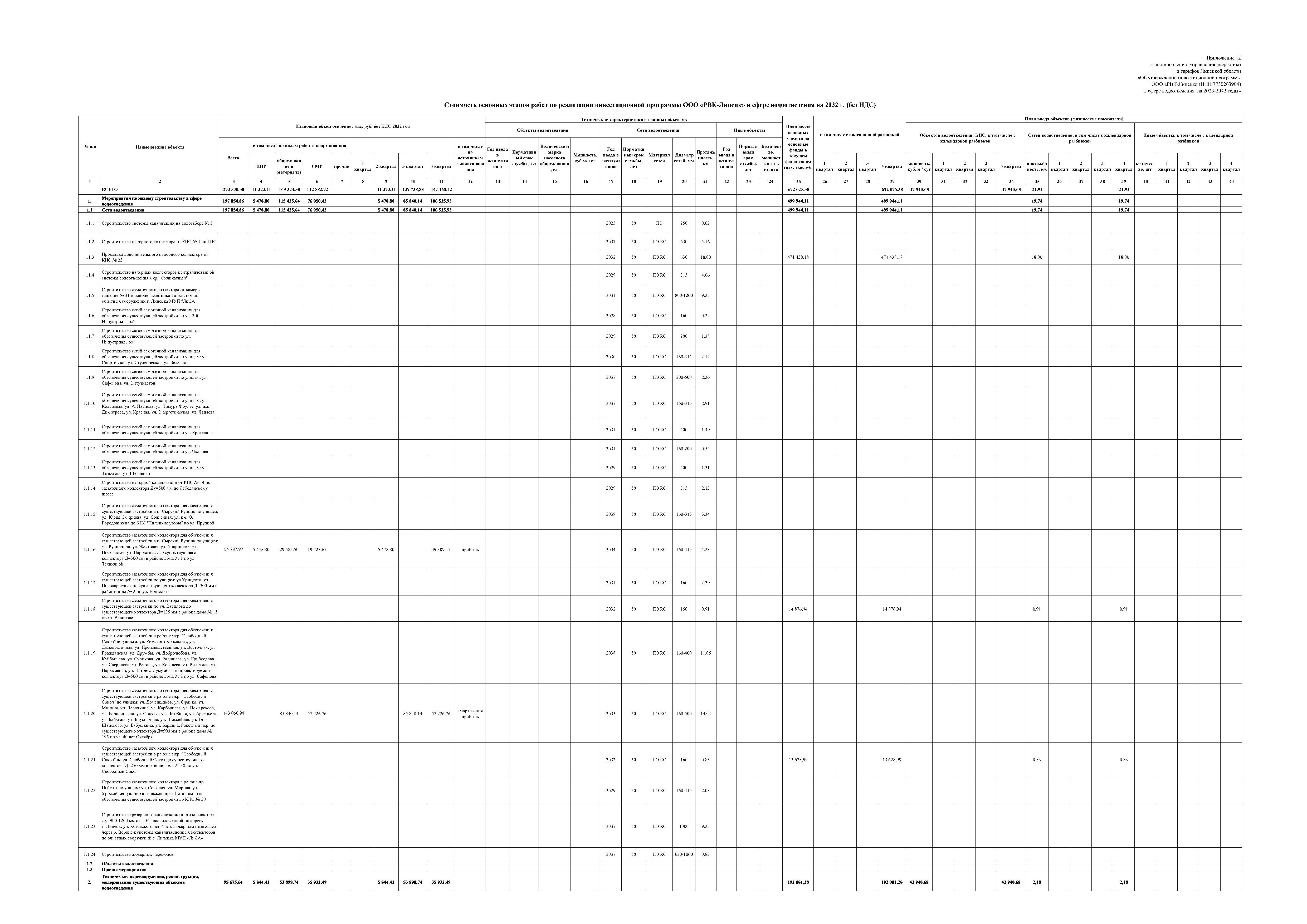 "Об утверждении инвестиционной программы ООО "РВК-Липецк" (ИНН 7730263904) в сфере водоотведения на 2023-2042 годы"