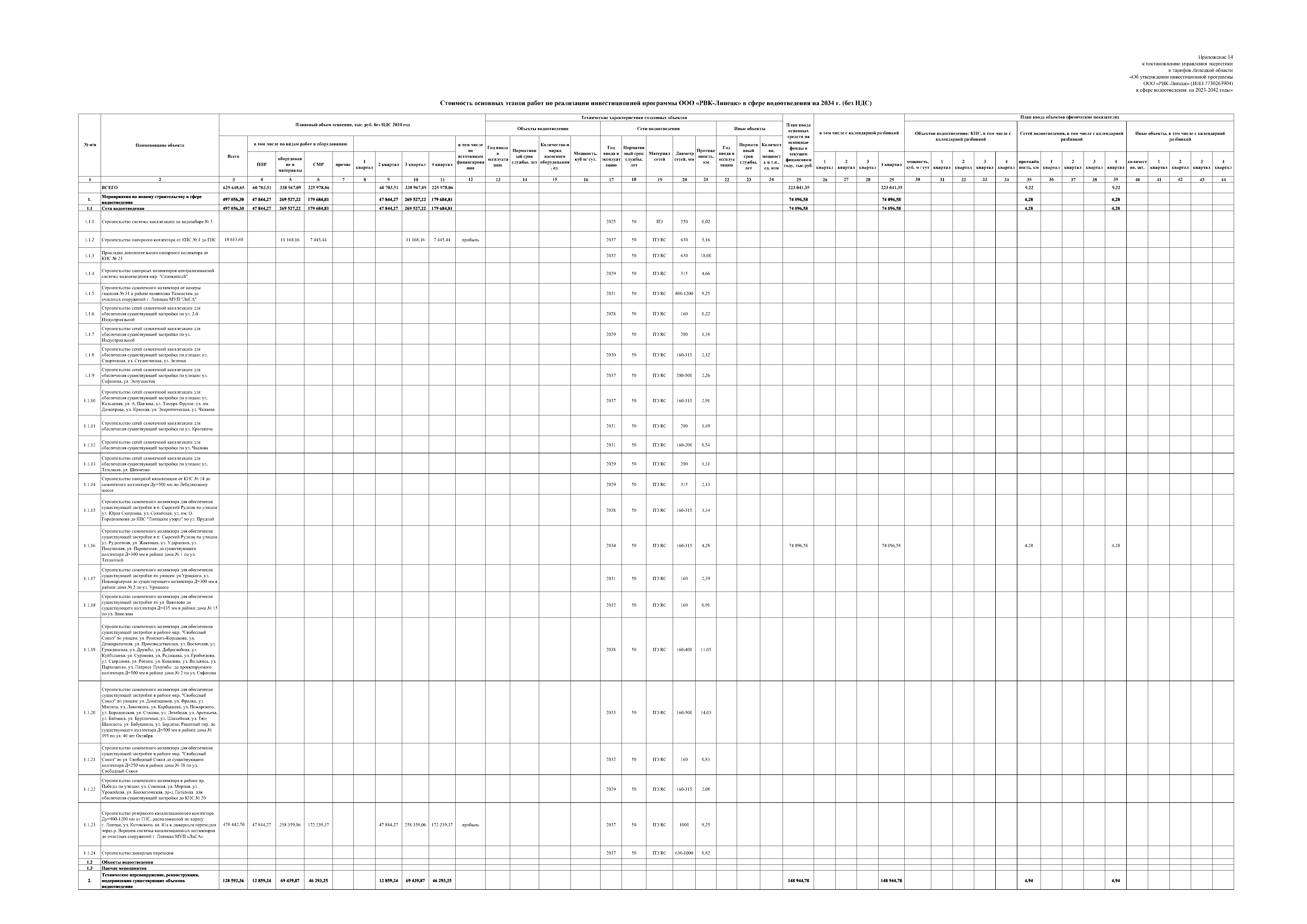 "Об утверждении инвестиционной программы ООО "РВК-Липецк" (ИНН 7730263904) в сфере водоотведения на 2023-2042 годы"