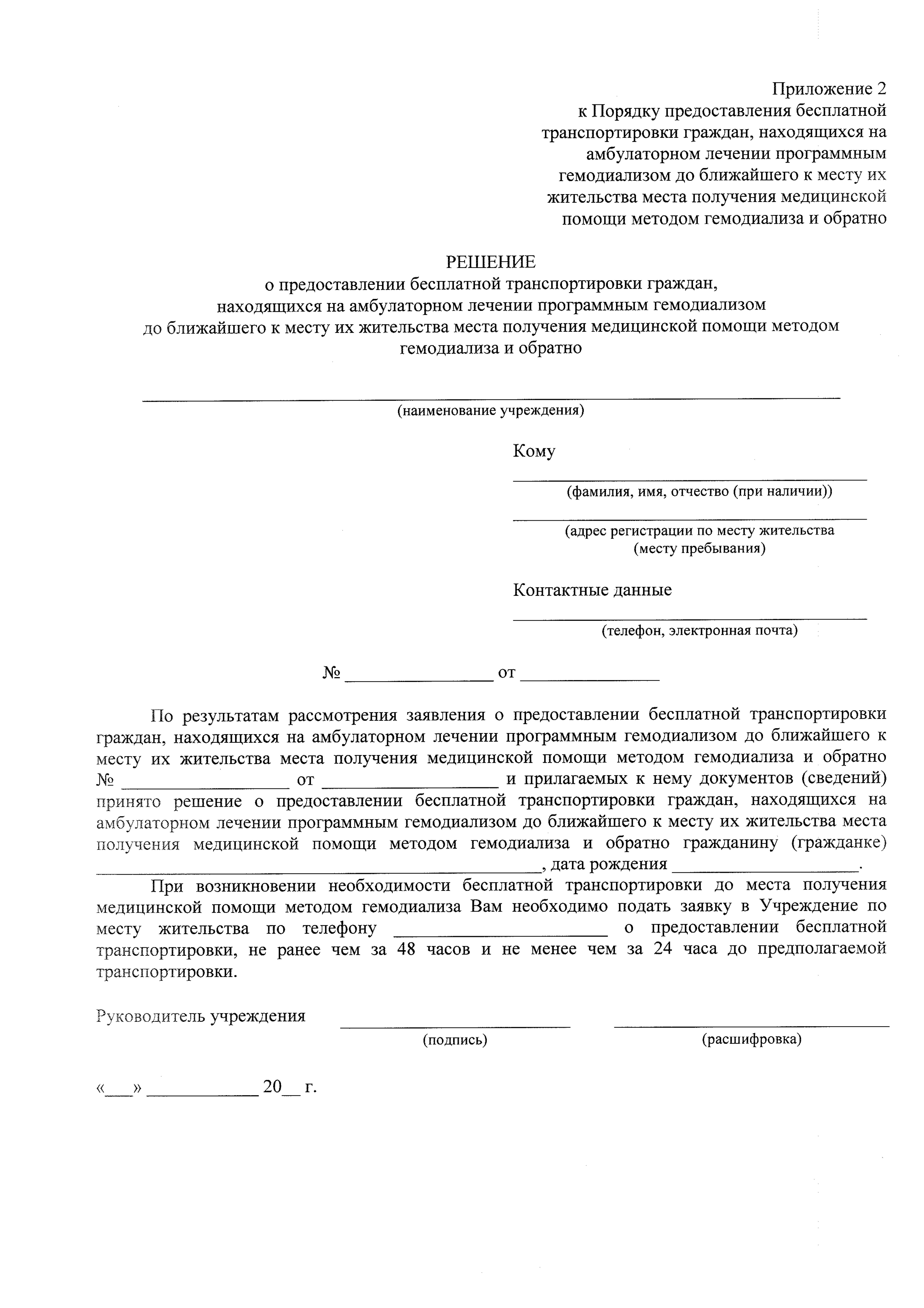"Об утверждении Порядка предоставления бесплатной транспортировки граждан, находящихся на амбулаторном лечении программным гемодиализом до ближайшего к месту их жительства места получения медицинской помощи методом гемодиализа и обратно"