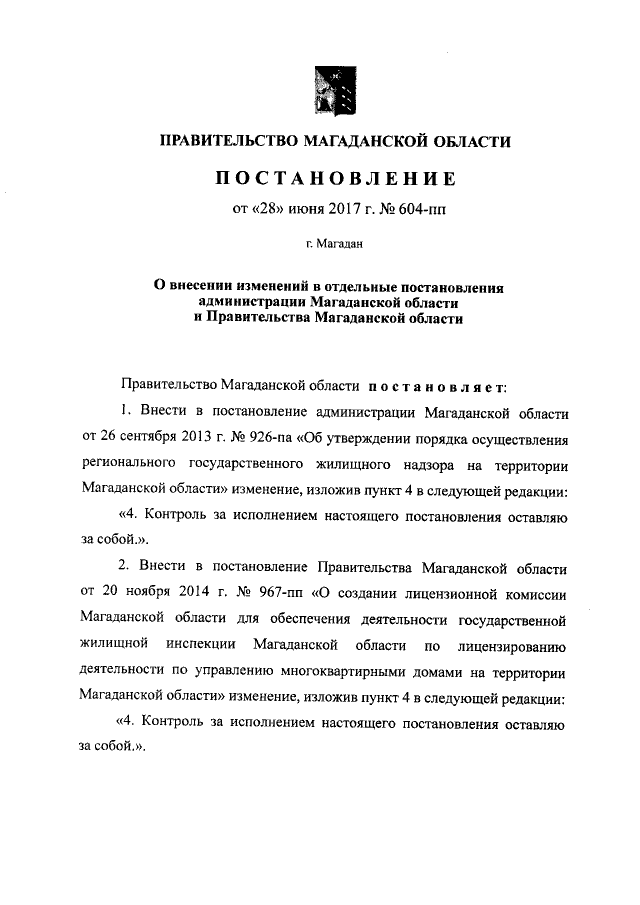 Постановление Правительства Магаданской области от 28.06.2017 № 604-пп