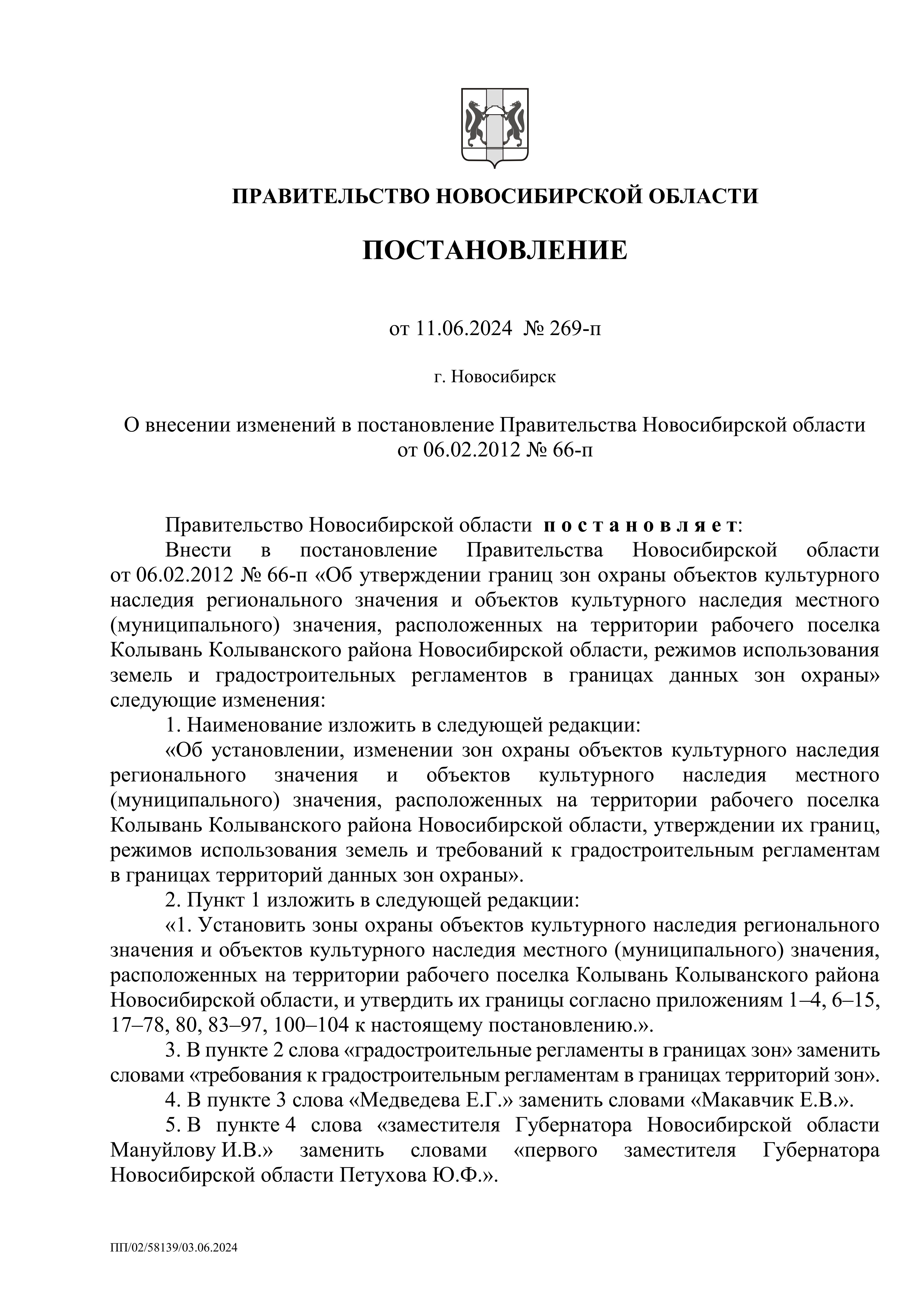 Постановление Правительства Новосибирской области от 11.06.2024 № 269-п