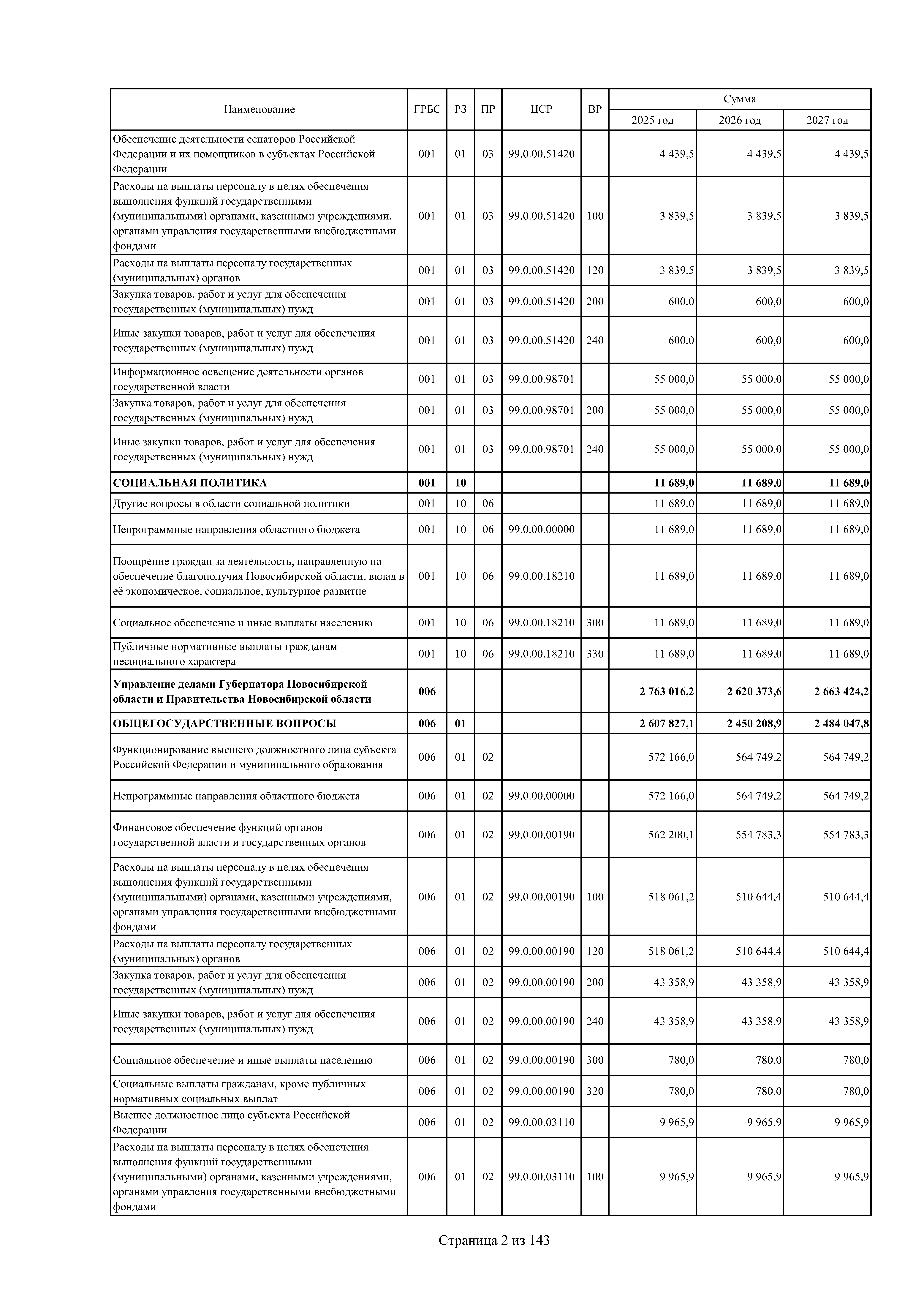 "Об областном бюджете Новосибирской области на 2025 год и плановый период 2026 и 2027 годов"