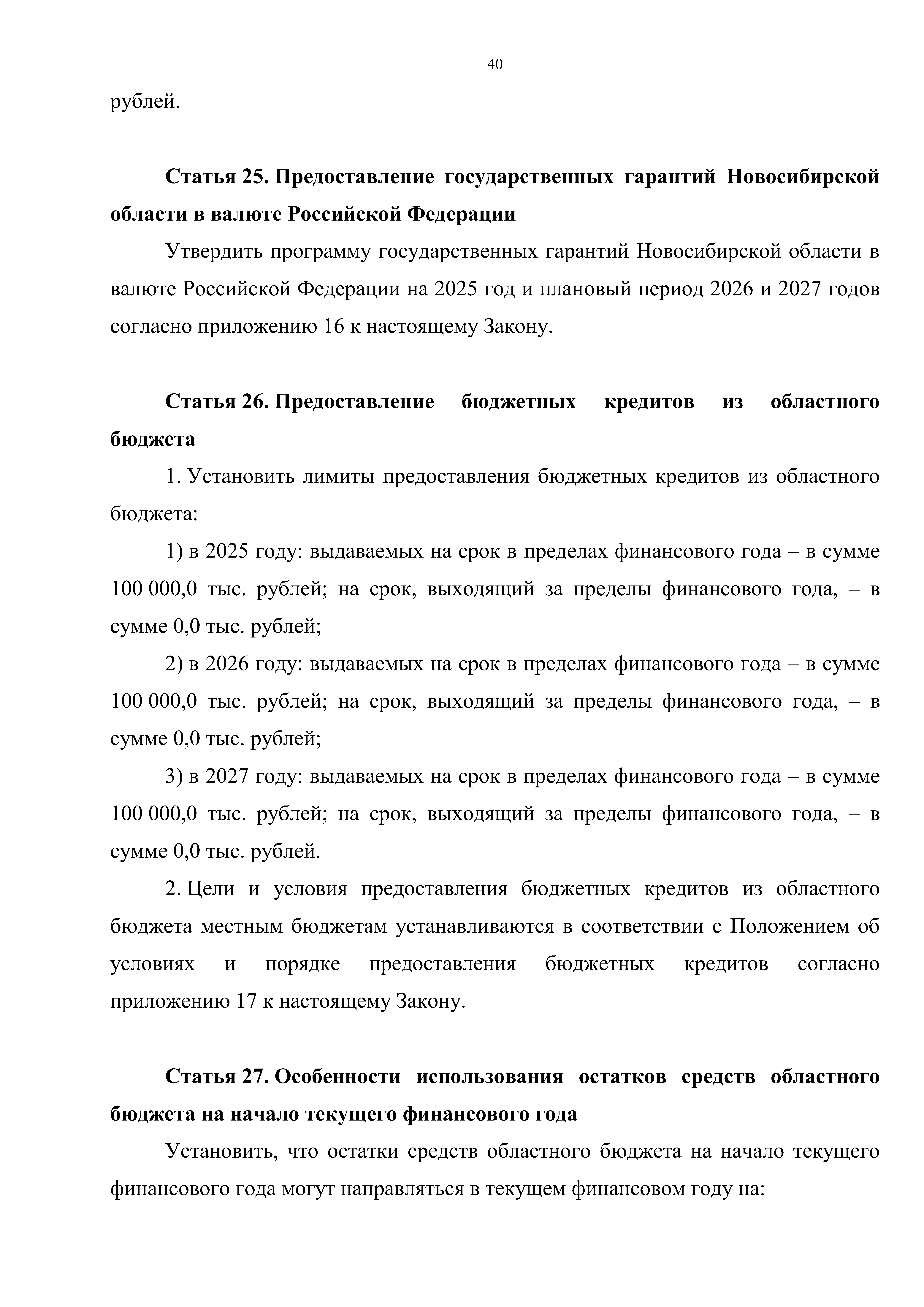"Об областном бюджете Новосибирской области на 2025 год и плановый период 2026 и 2027 годов"