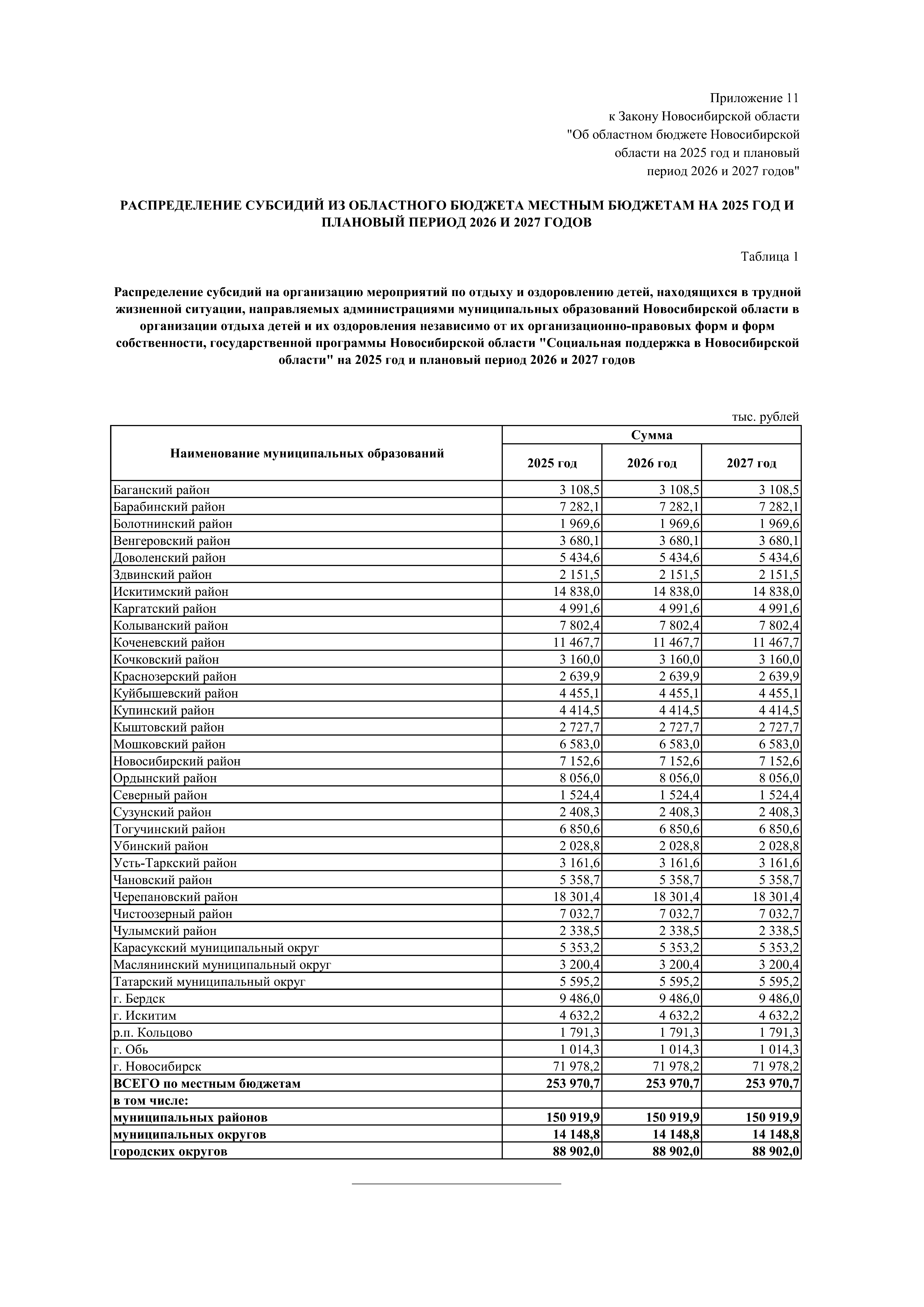 "Об областном бюджете Новосибирской области на 2025 год и плановый период 2026 и 2027 годов"