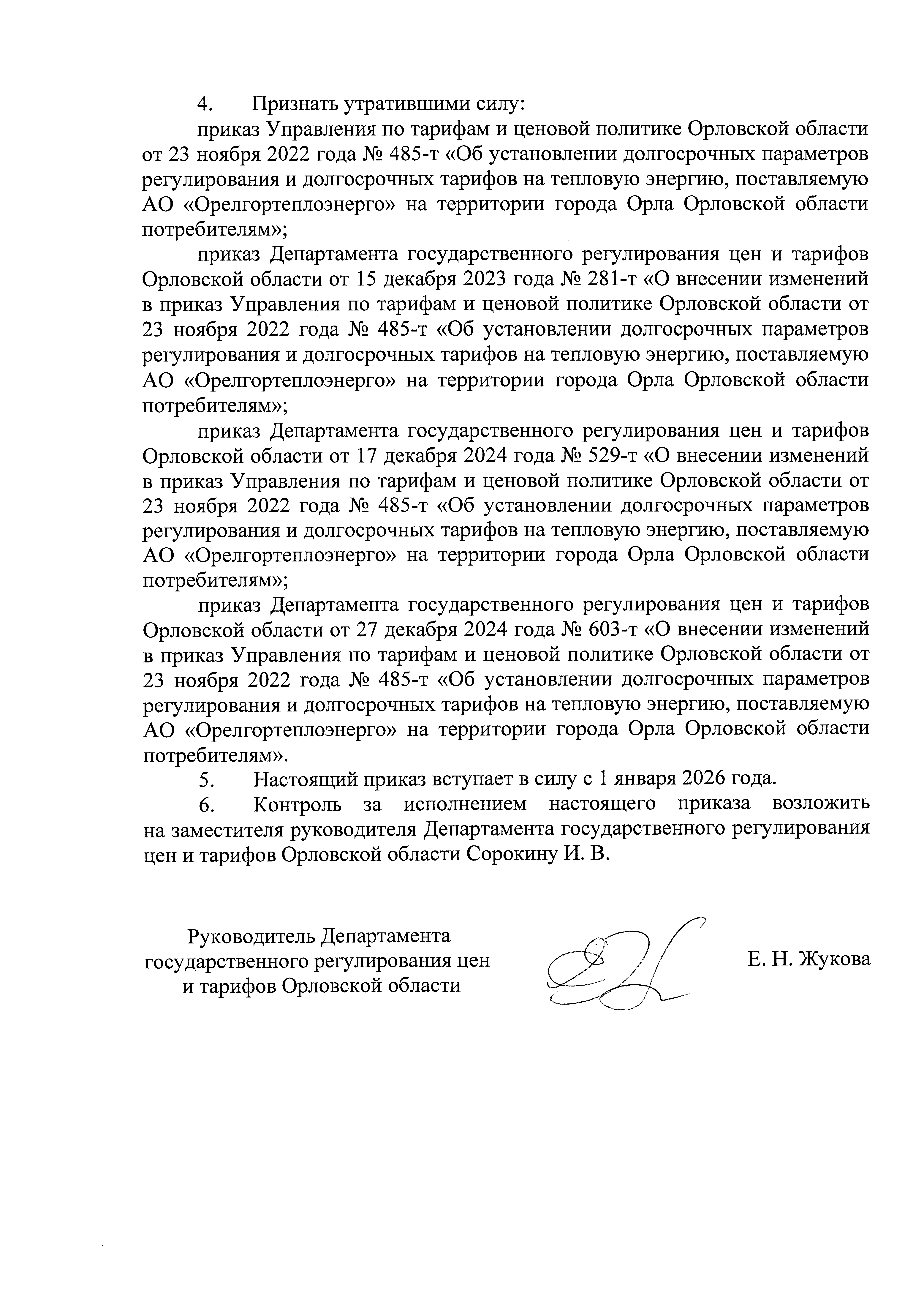Приказ Департамента государственного регулирования цен и тарифов Орловской области от 17.12.2025 № 486-т