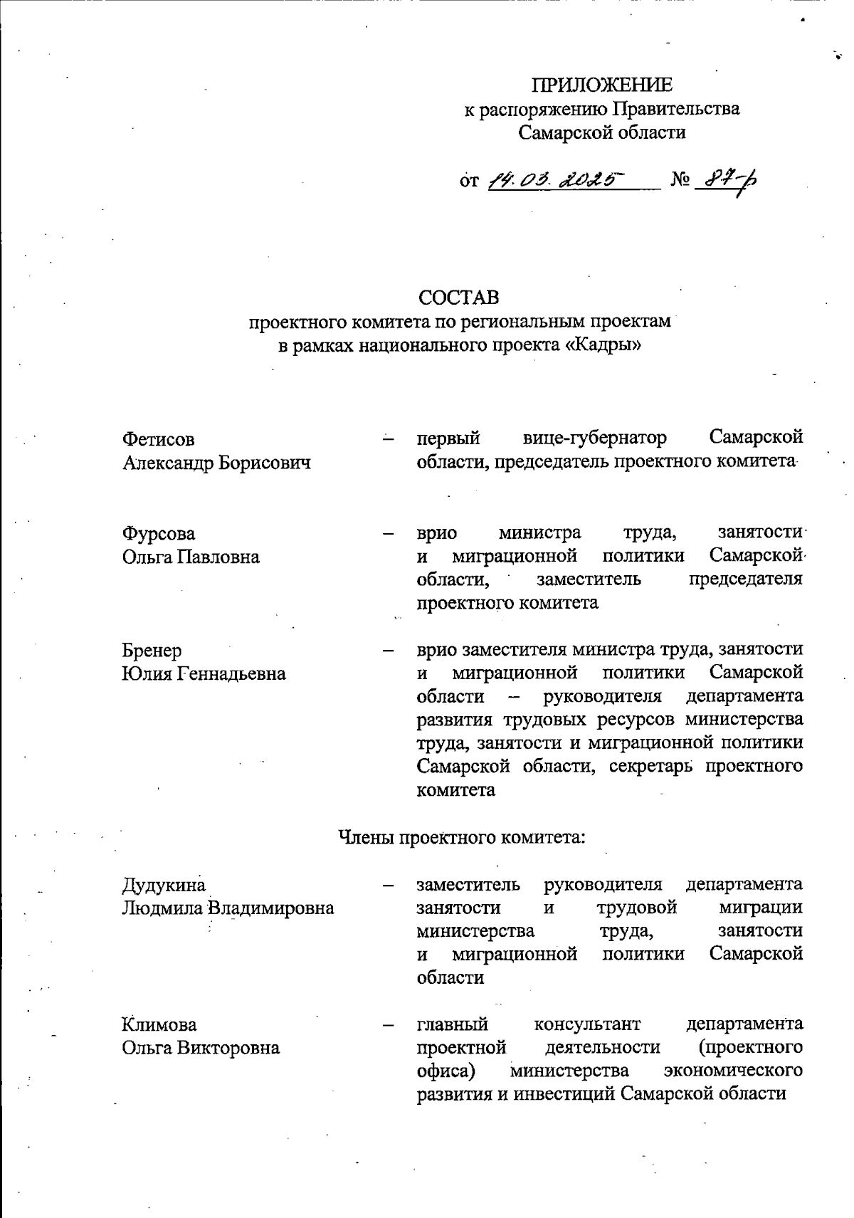 Распоряжение Правительства Самарской области от 14.03.2025 № 87-р