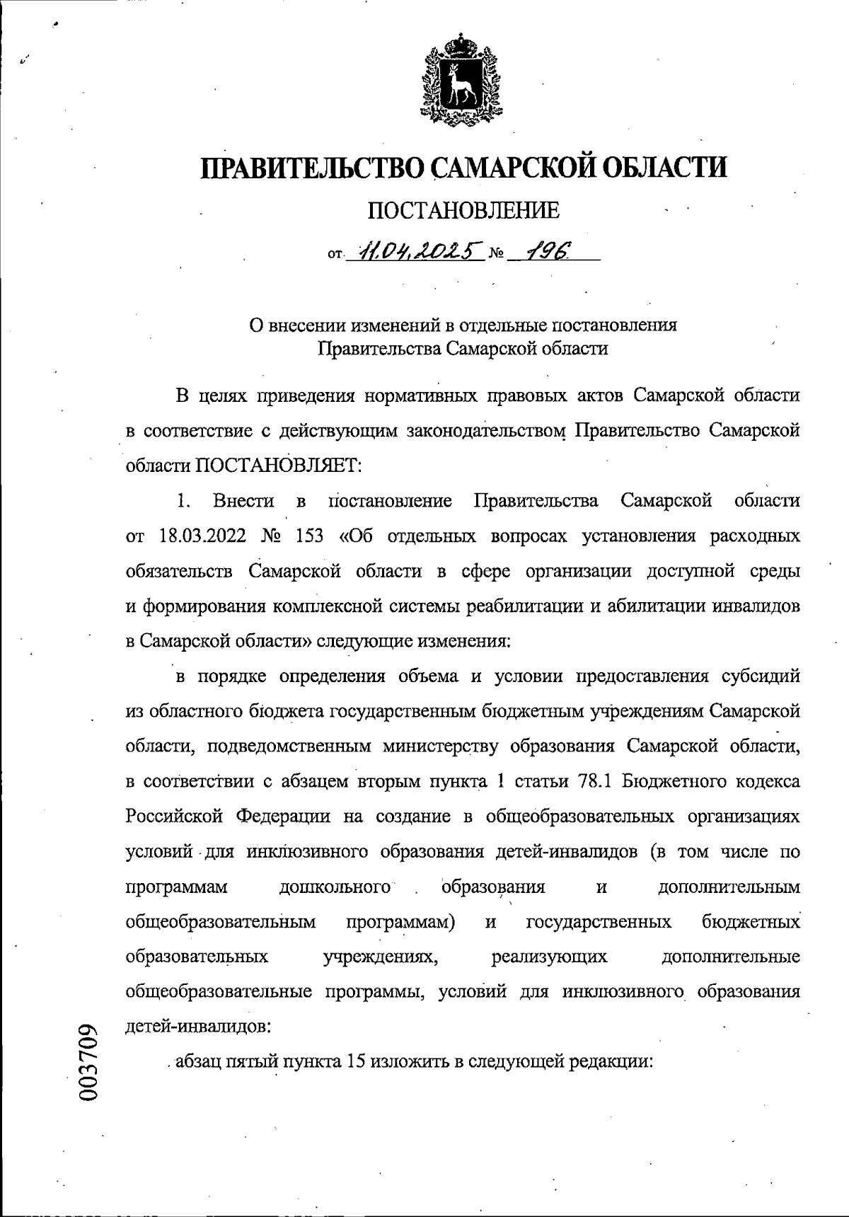 Постановление Правительства Самарской области от 11.04.2025 № 196