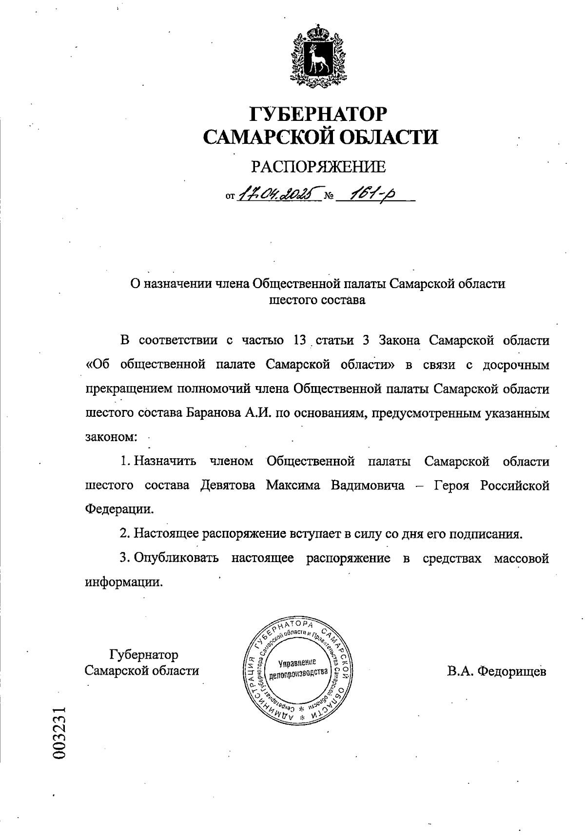 Распоряжение Губернатора Самарской области от 17.04.2025 № 161-р