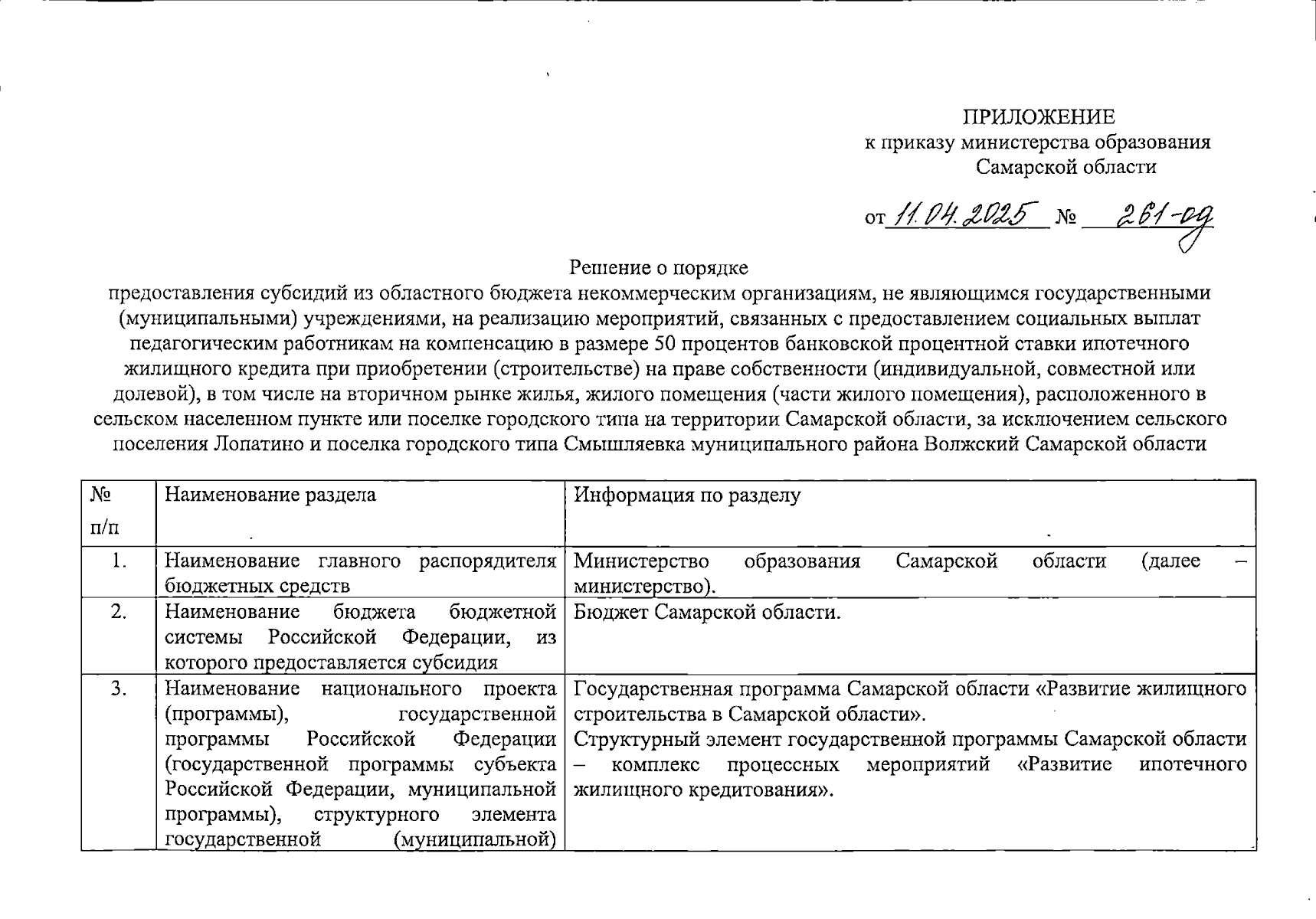 Приказ Министерства образования Самарской области от 11.04.2025 № 261-од