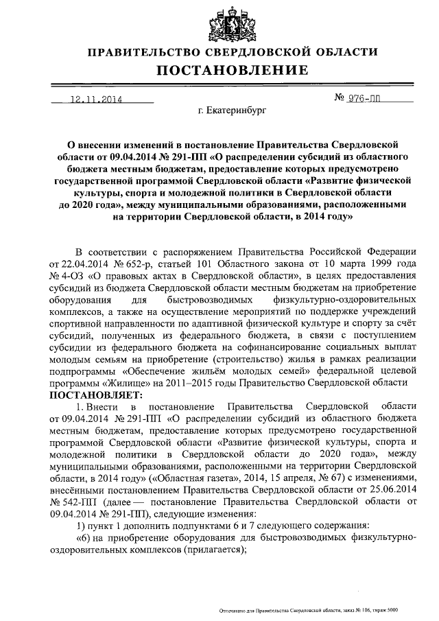 Постановление Правительства Свердловской области от 12.11.2014 № 976-ПП