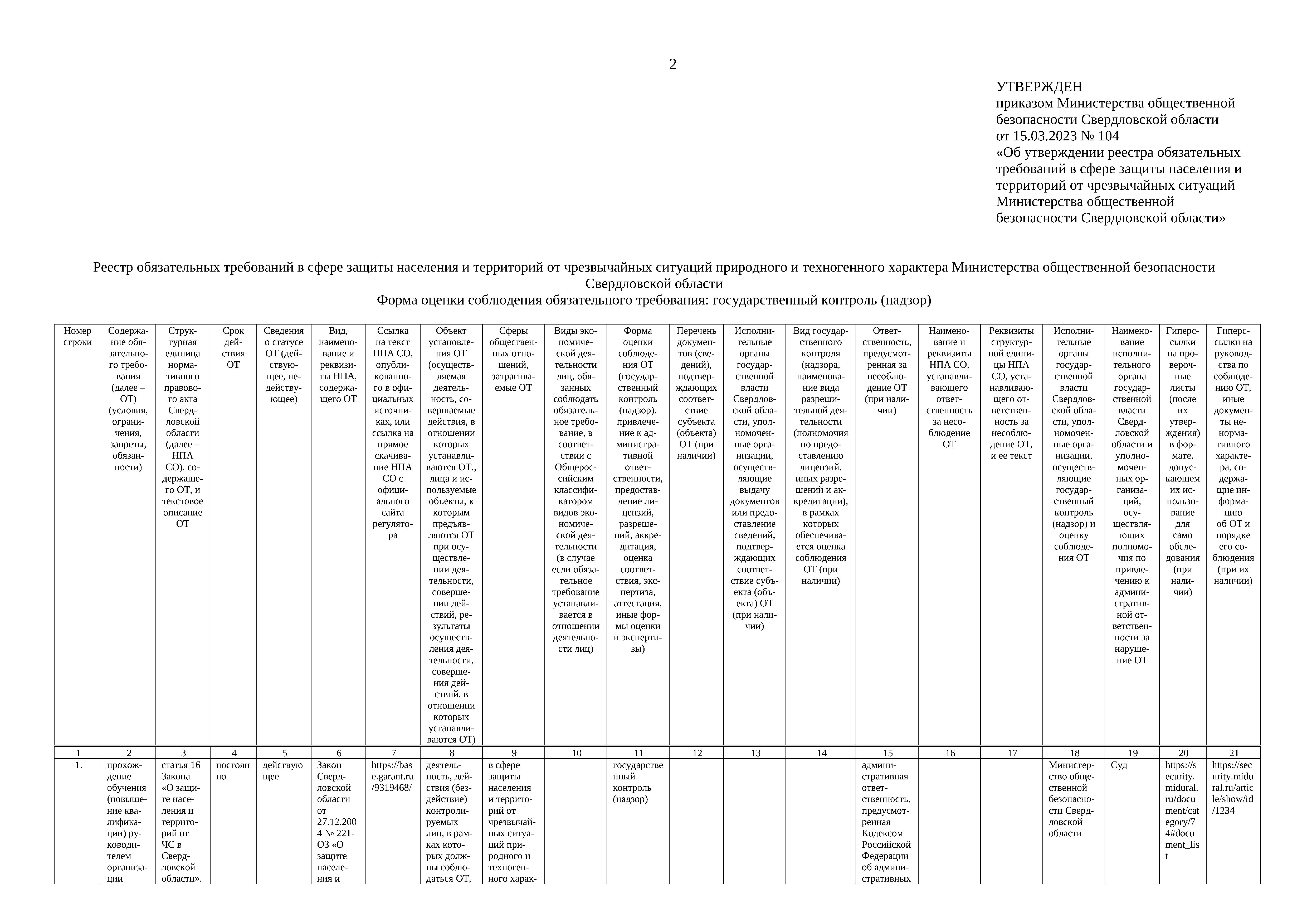 Приказ Министерства общественной безопасности Свердловской области от 15.03.2023 № 104