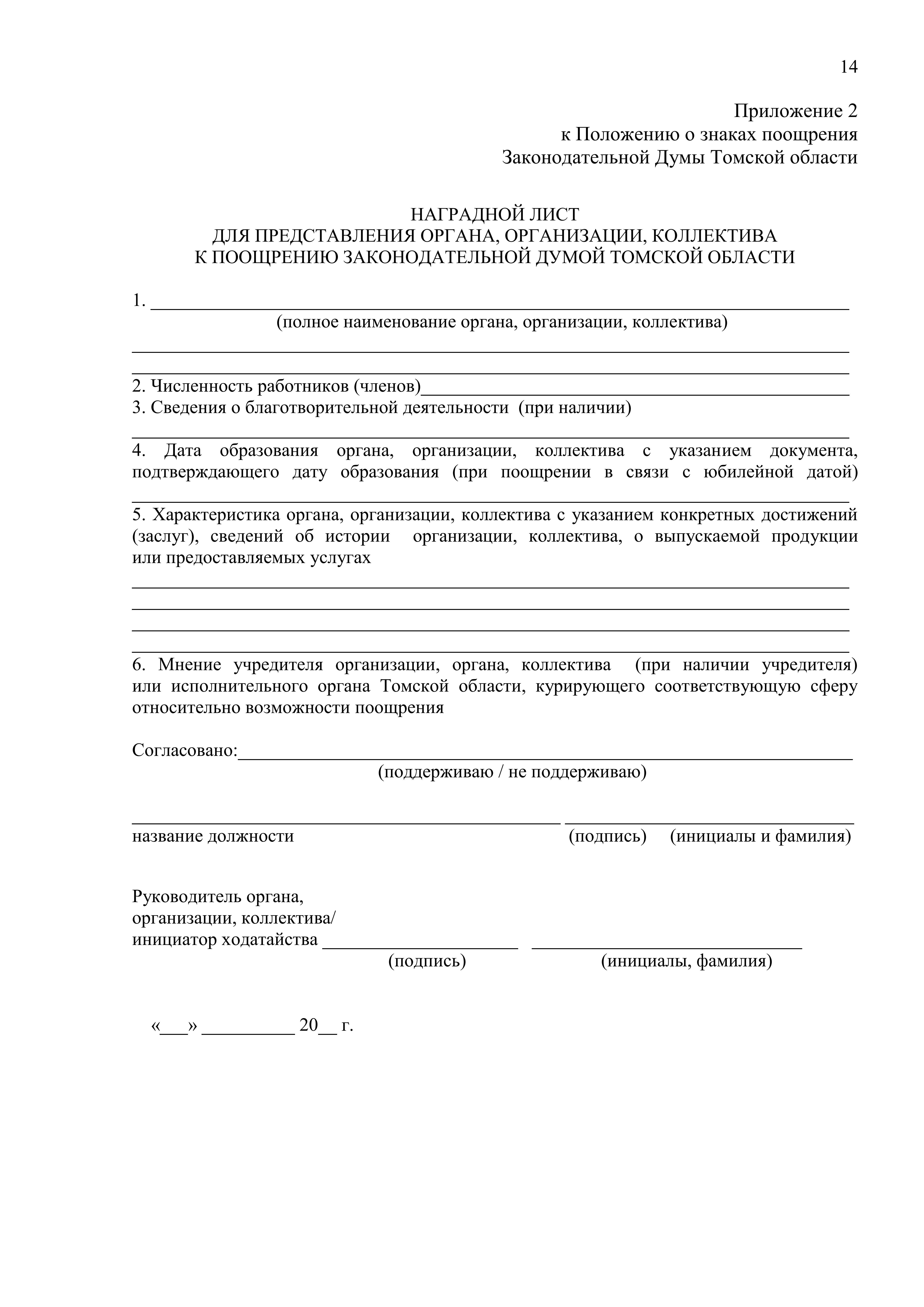 "О внесении изменения в постановление Законодательной Думы Томской области от 25 декабря 2018 года № 1457 "Об утверждении Положения о знаках поощрения Законодательной Думы Томской области"