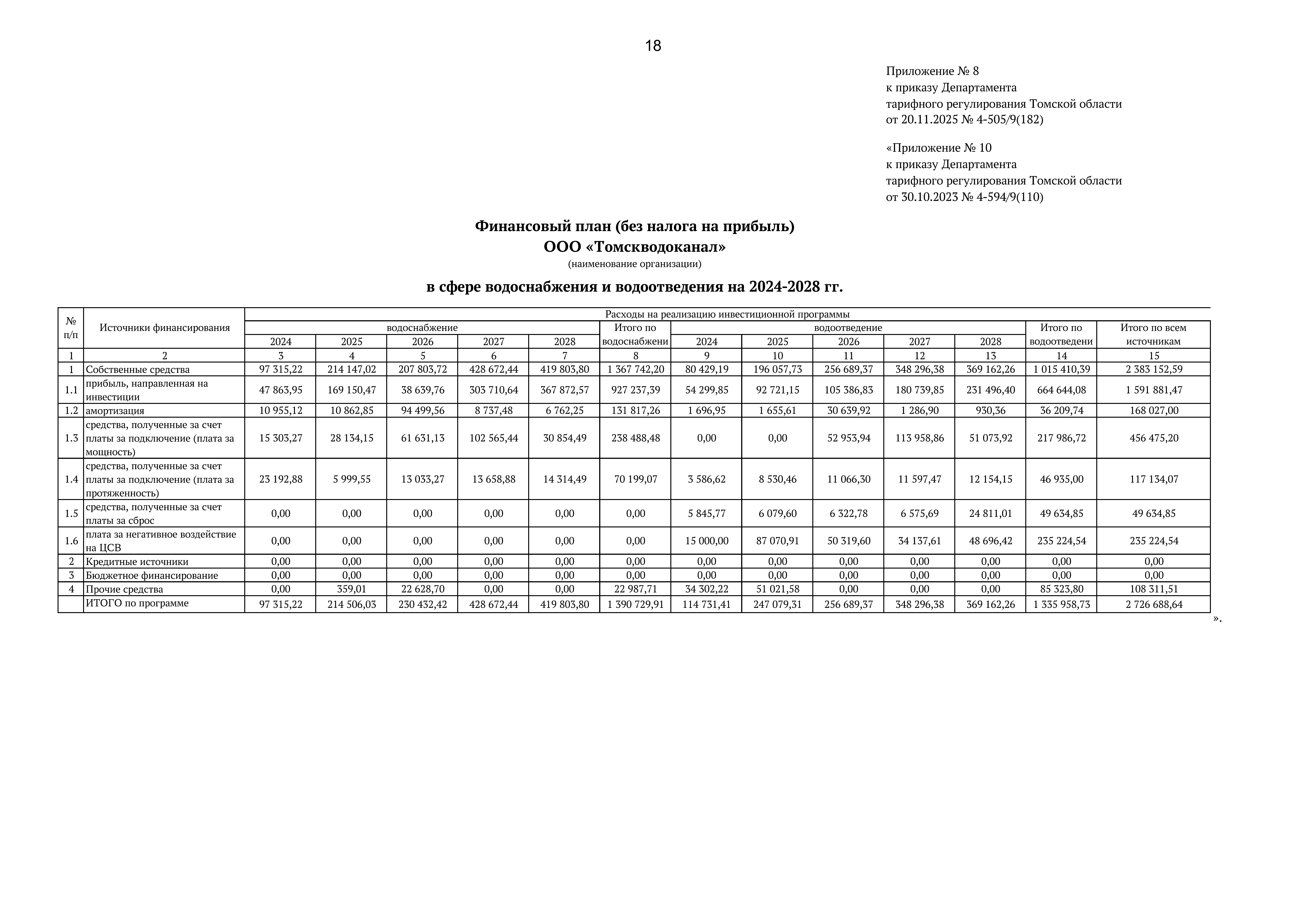 Приказ Департамента тарифного регулирования Томской области от 20.11.2025 № 4-505/9(182)