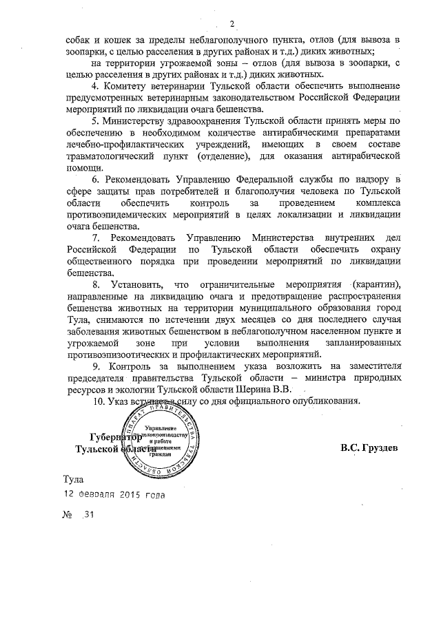 Указ Губернатора Тульской области от 12.02.2015 № 31