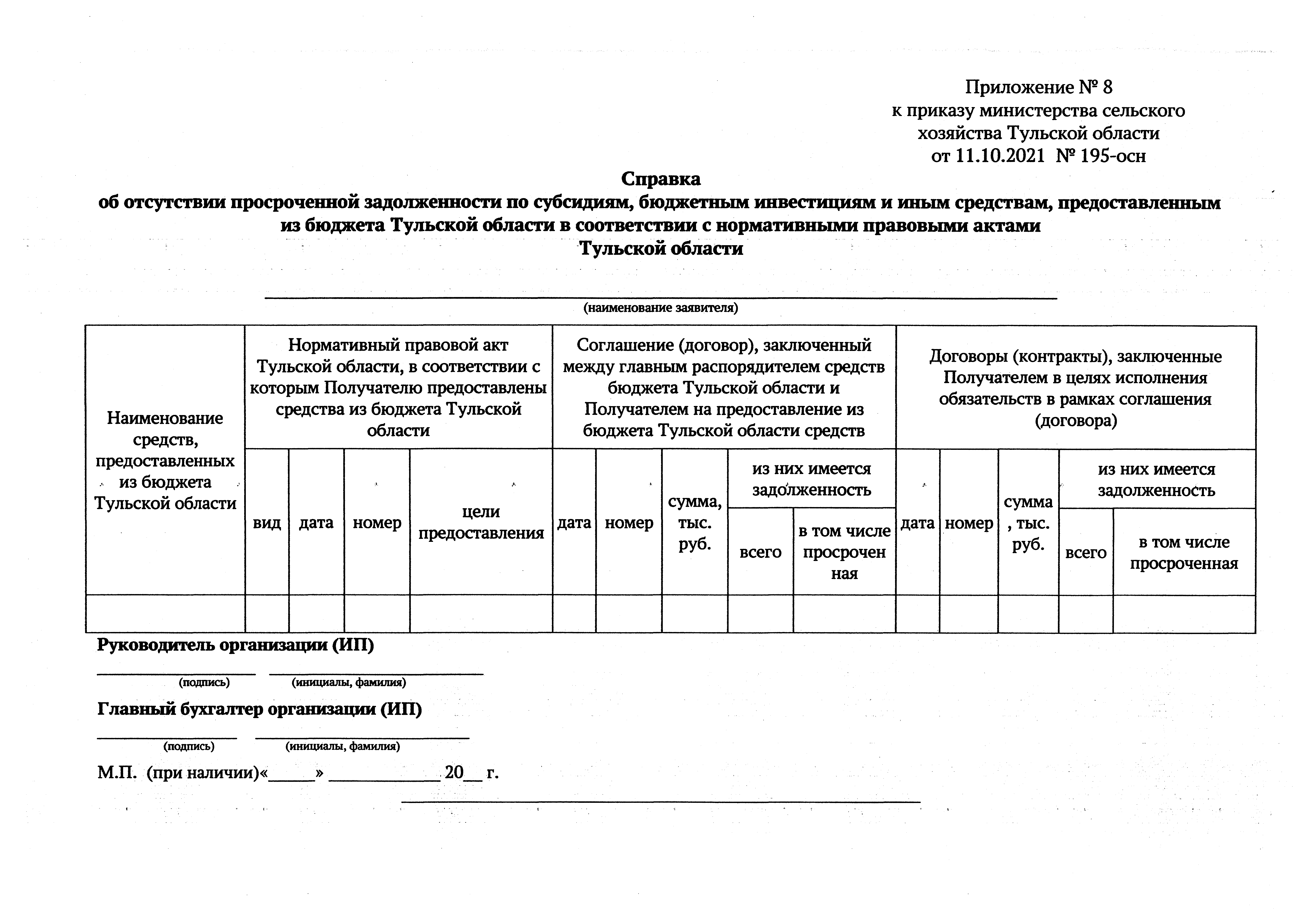 Приказ Министерства сельского хозяйства Тульской области от 11.10.2021 № 195-осн