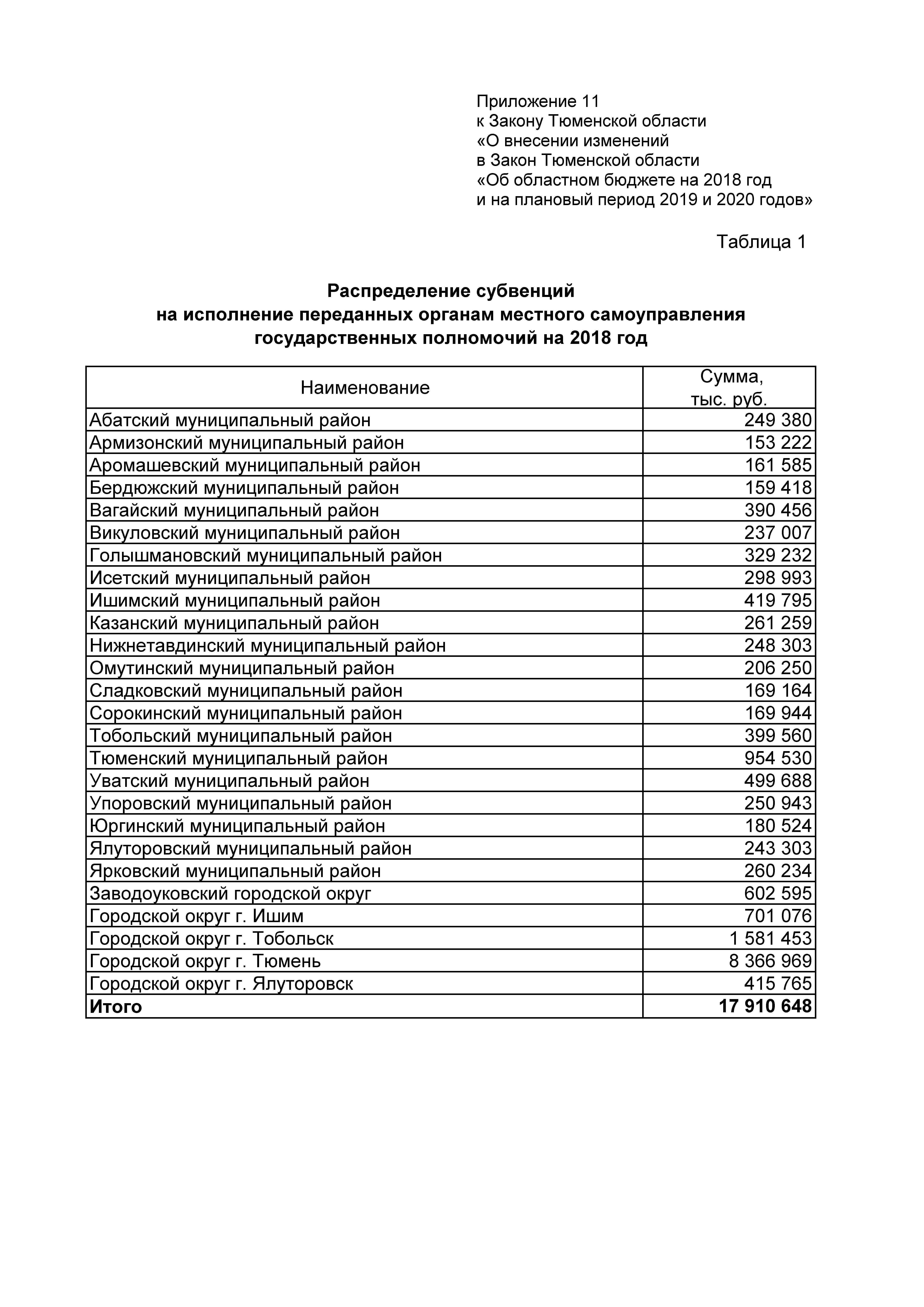 "О внесении изменений в Закон Тюменской области "Об областном бюджете на 2018 год и на плановый период 2019 и 2020 годов"