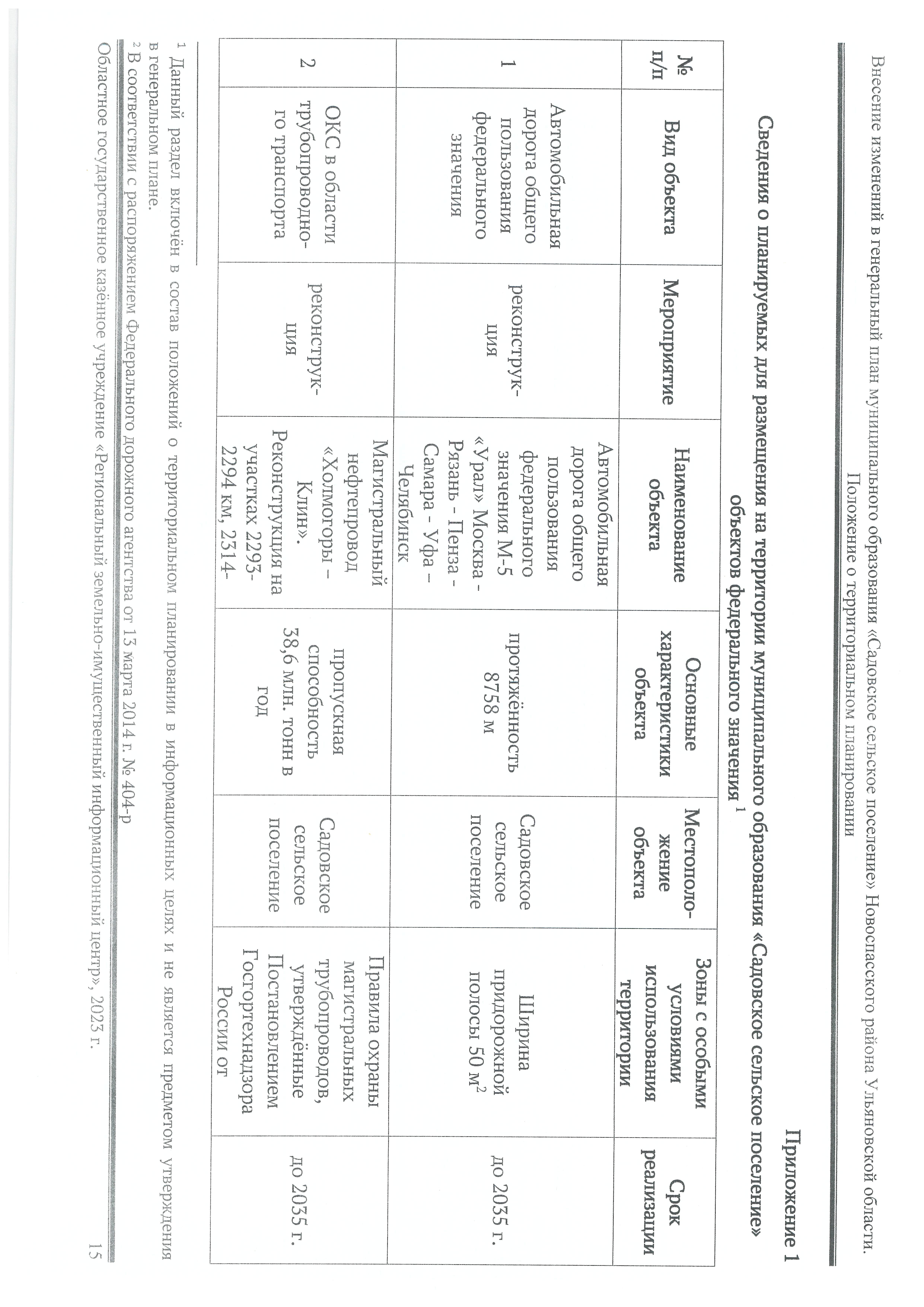 "О внесении изменения в генеральный план муниципального образования "Садовское сельское поселение" Новоспасского района Ульяновской области"