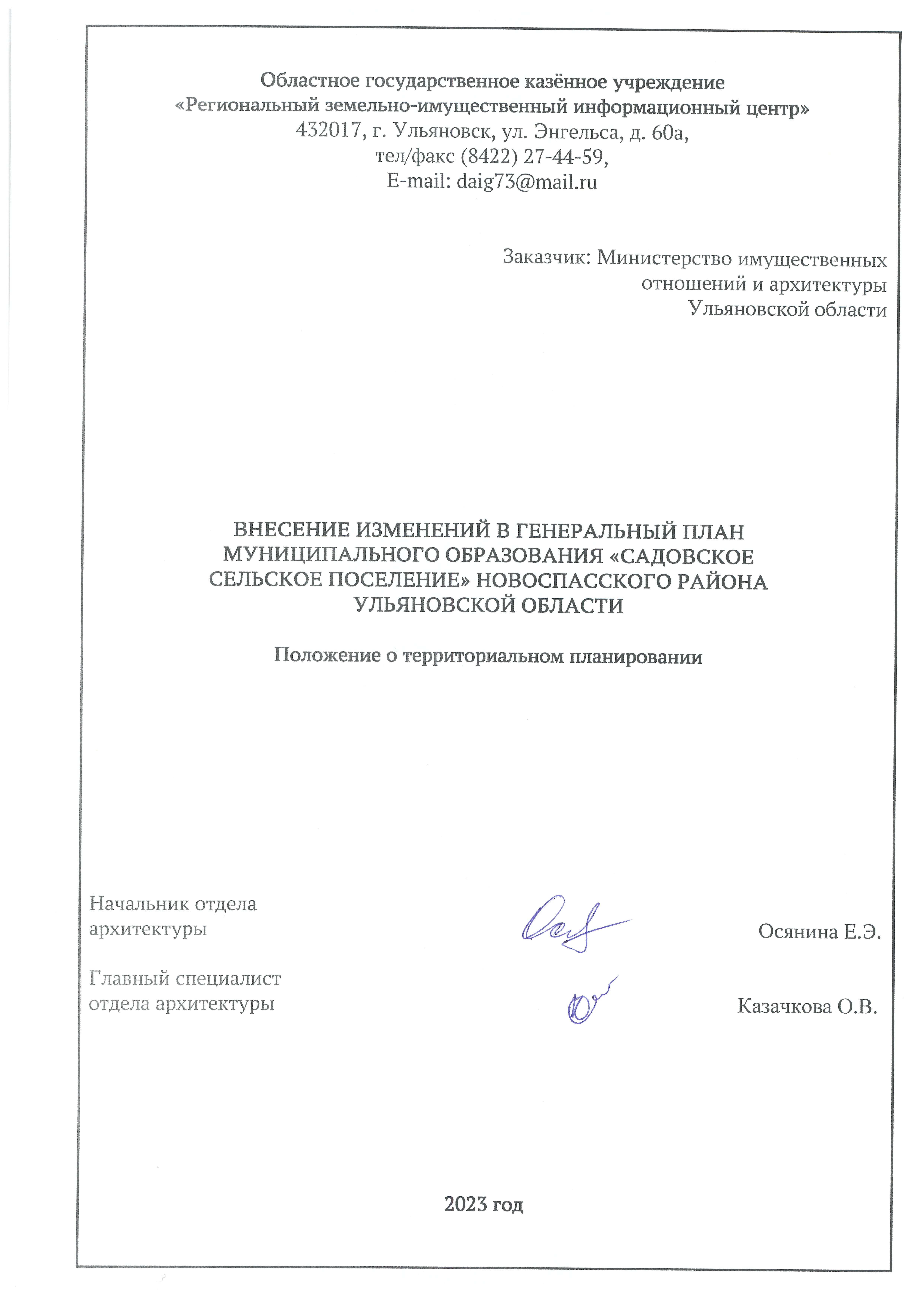 "О внесении изменения в генеральный план муниципального образования "Садовское сельское поселение" Новоспасского района Ульяновской области"