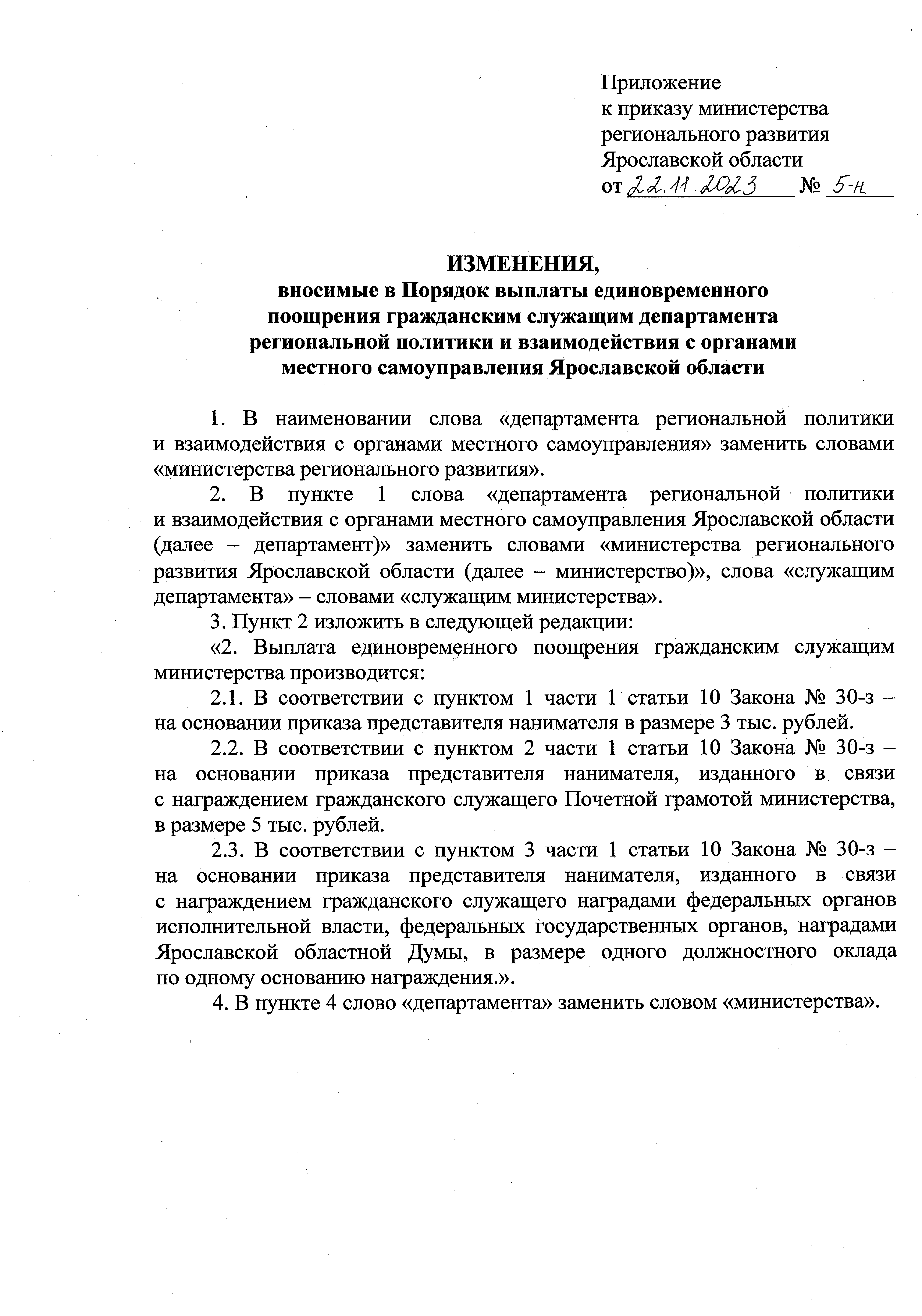 Приказ министерства регионального развития Ярославской области от 22.11.2023 № 5-н