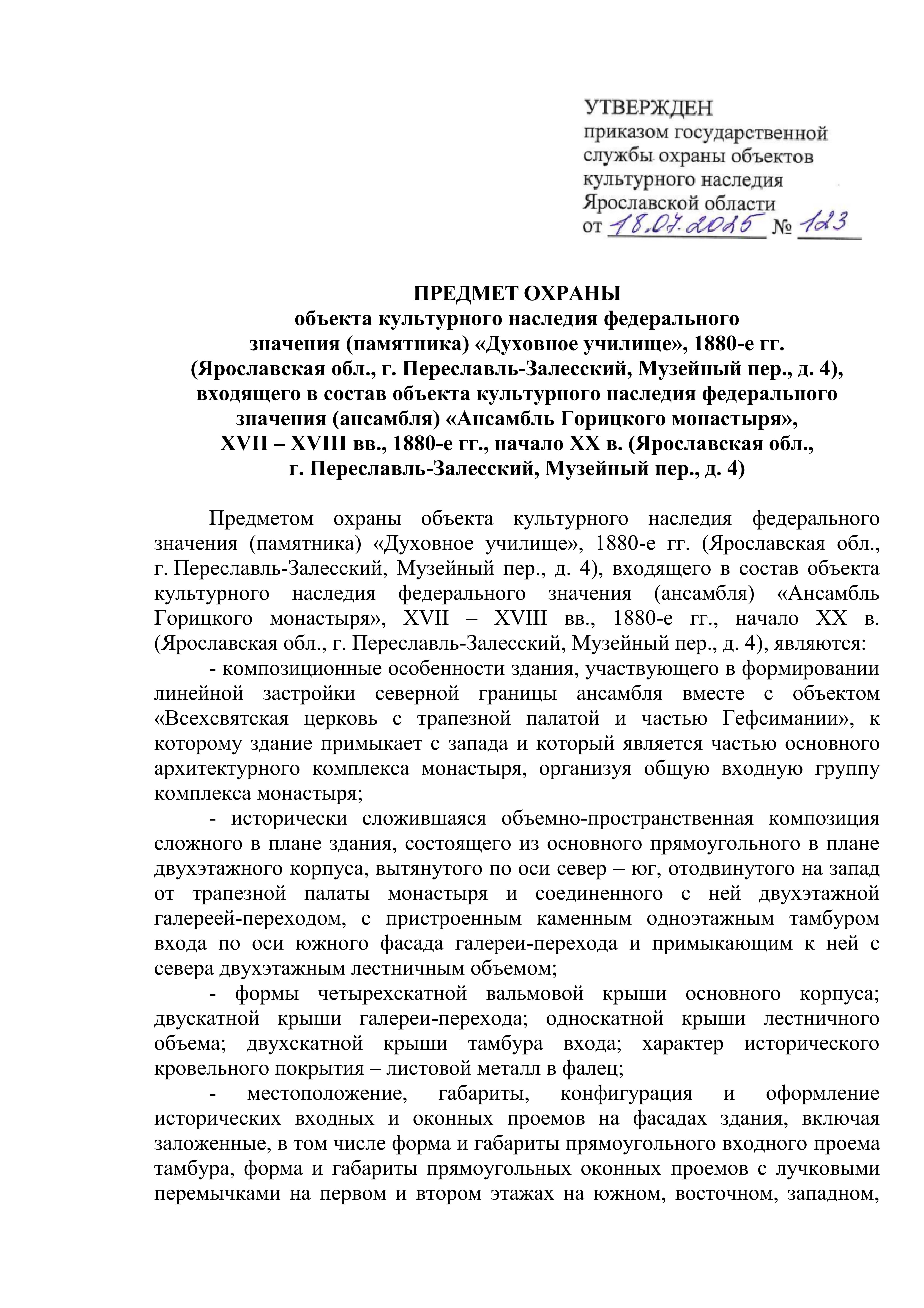 Приказ государственной службы охраны объектов культурного наследия Ярославской области от 18.07.2025 № 123