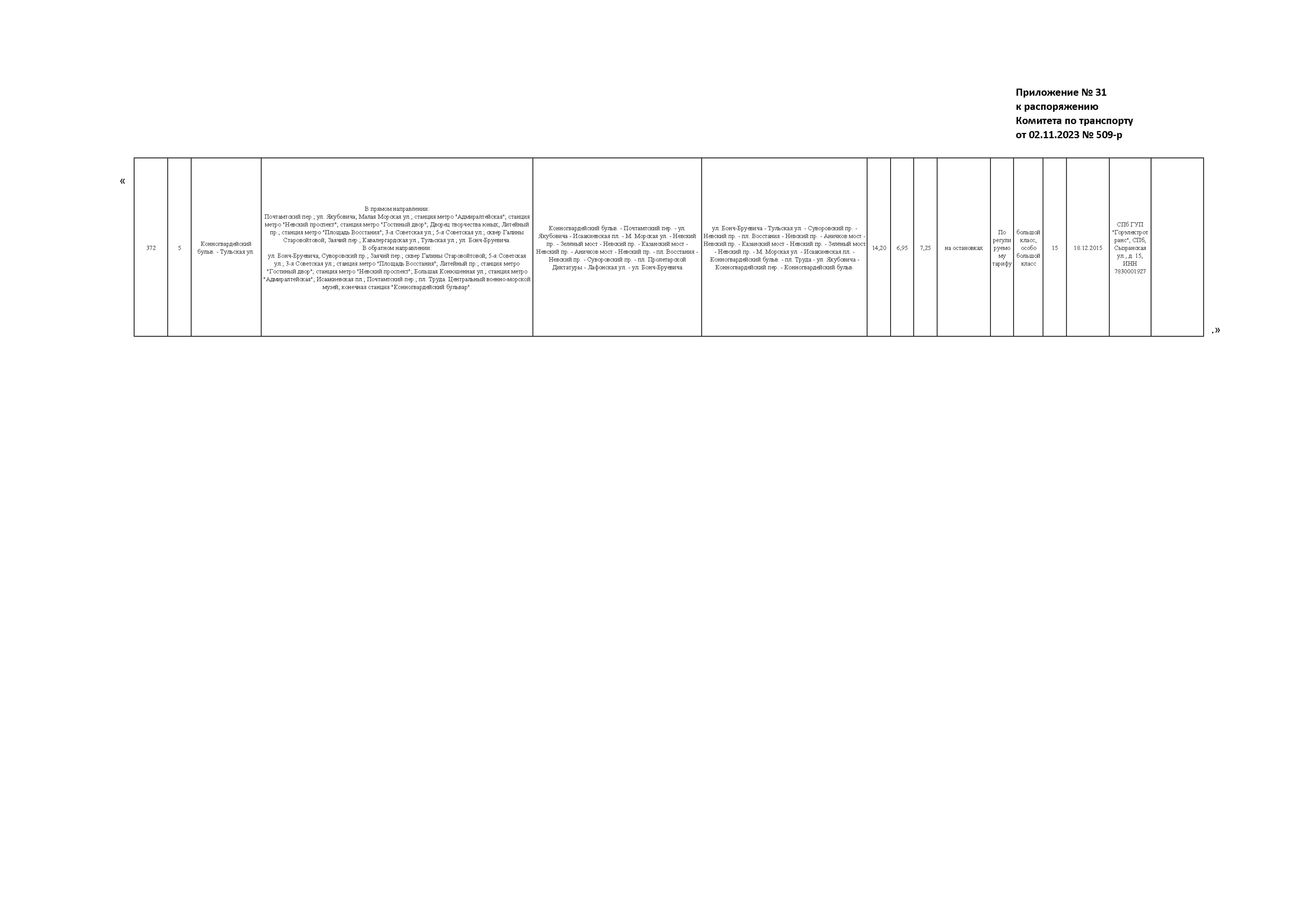 Распоряжение Комитета по транспорту Санкт-Петербурга от 02.11.2023 № 509-р
