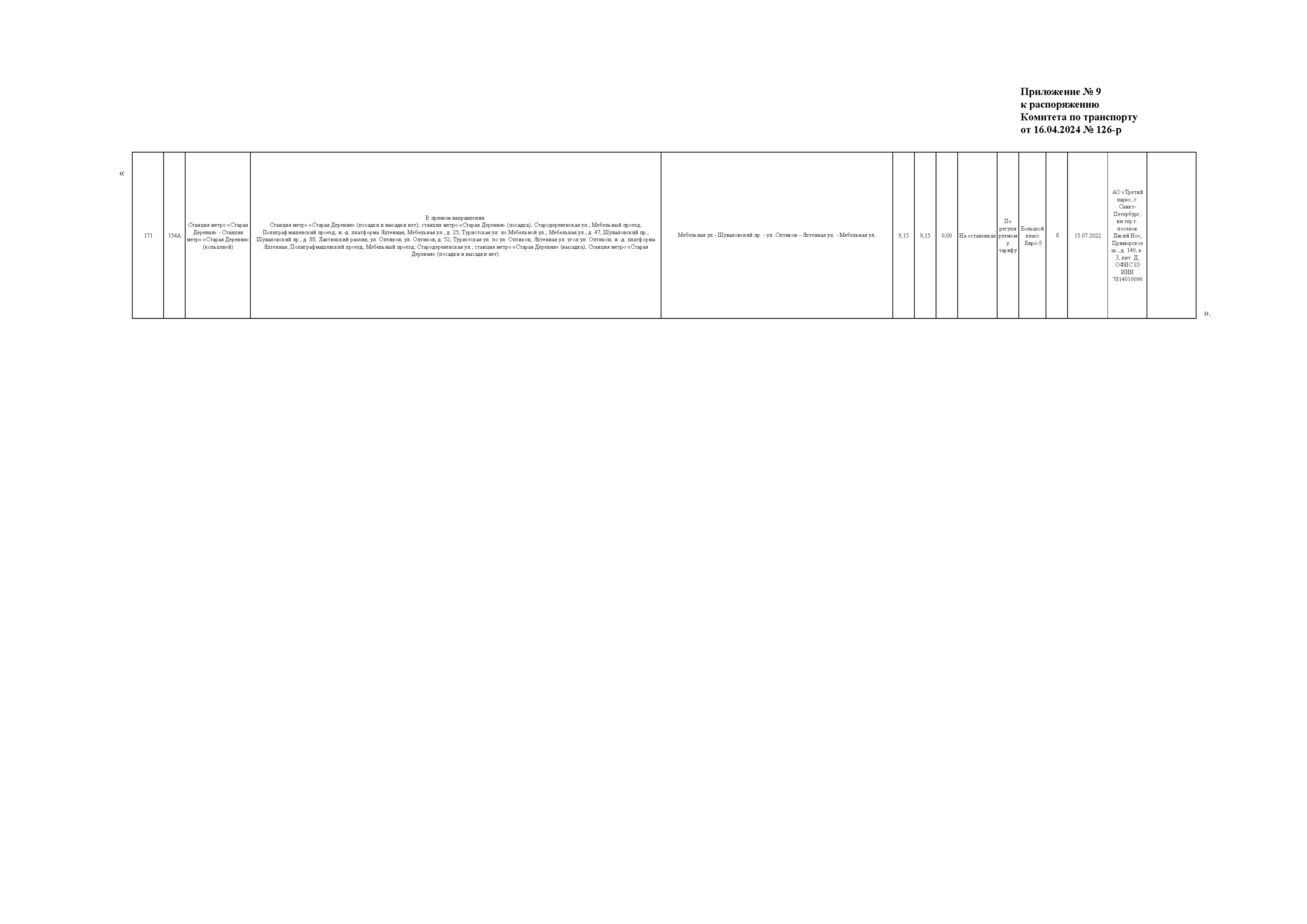Распоряжение Комитета по транспорту Санкт-Петербурга от 16.04.2024 № 126-р