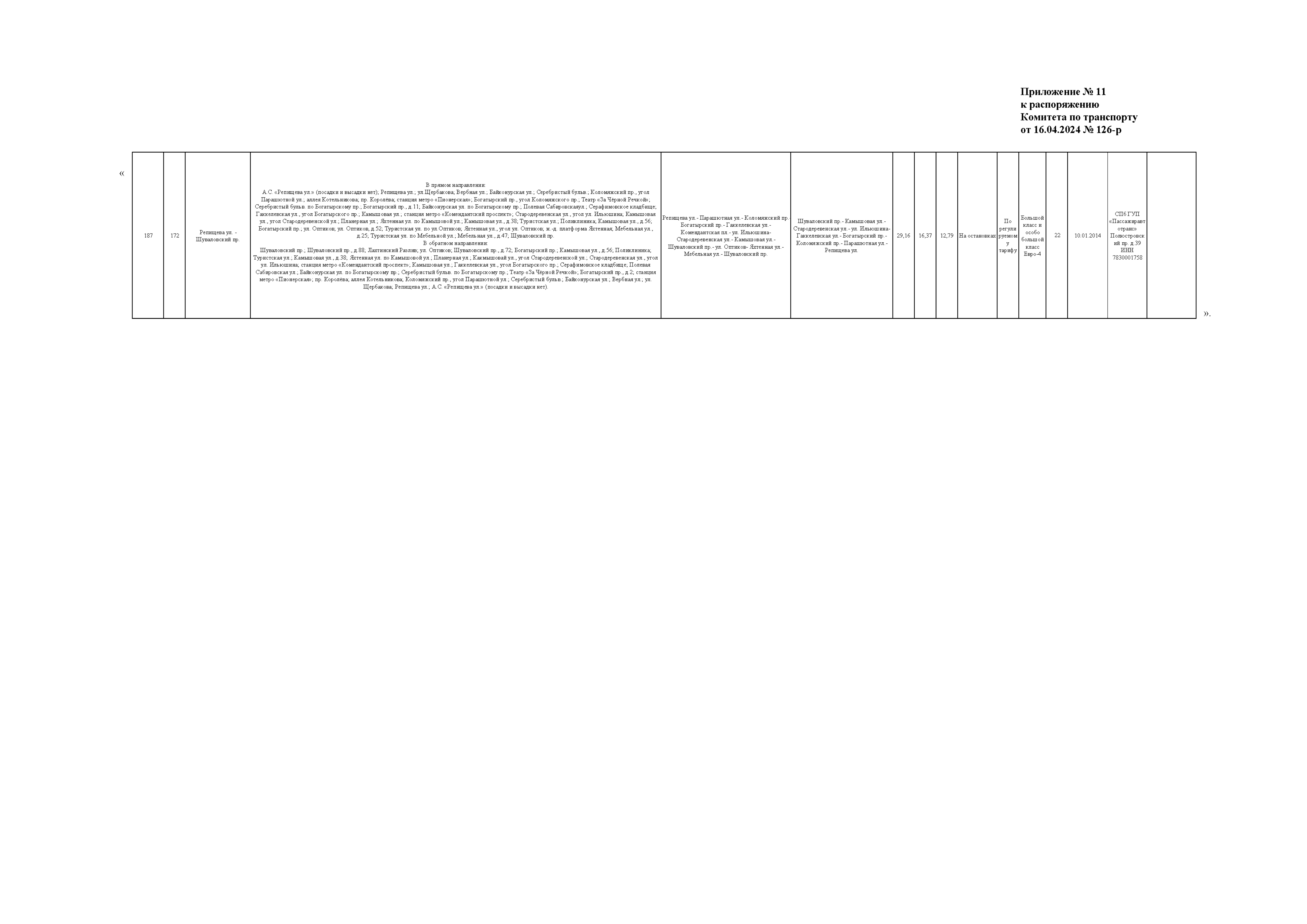 Распоряжение Комитета по транспорту Санкт-Петербурга от 16.04.2024 № 126-р