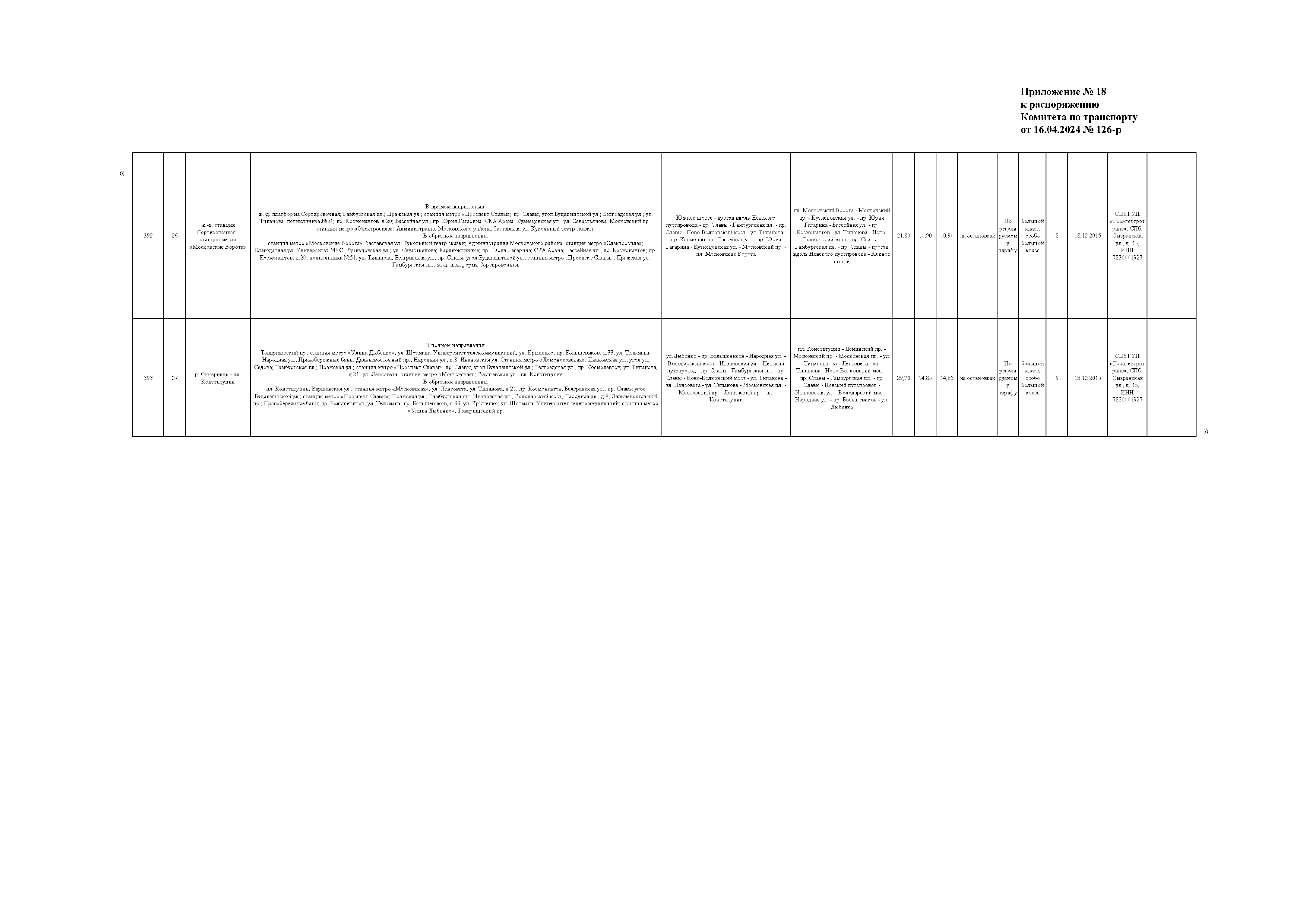 Распоряжение Комитета по транспорту Санкт-Петербурга от 16.04.2024 № 126-р