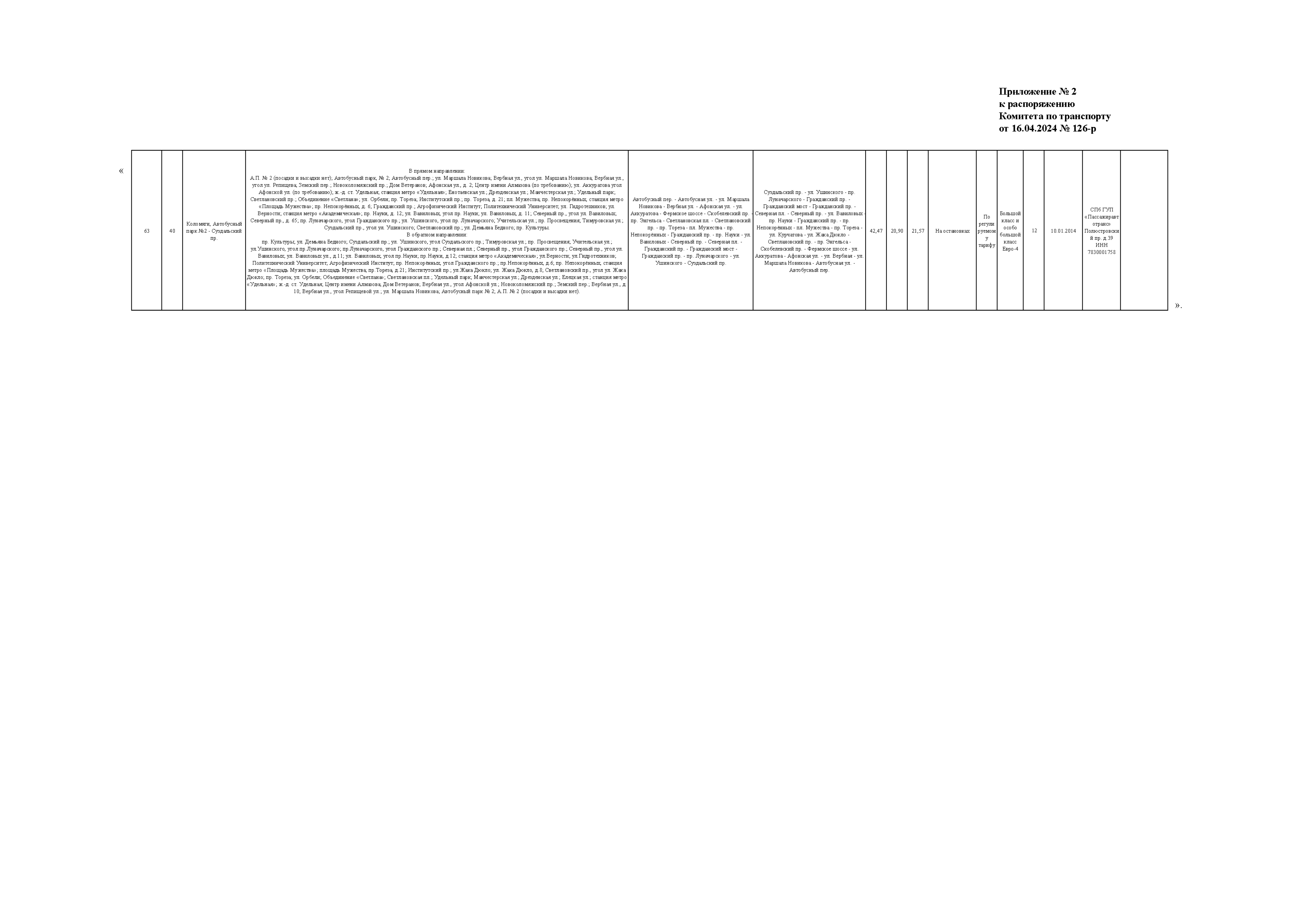 Распоряжение Комитета по транспорту Санкт-Петербурга от 16.04.2024 № 126-р