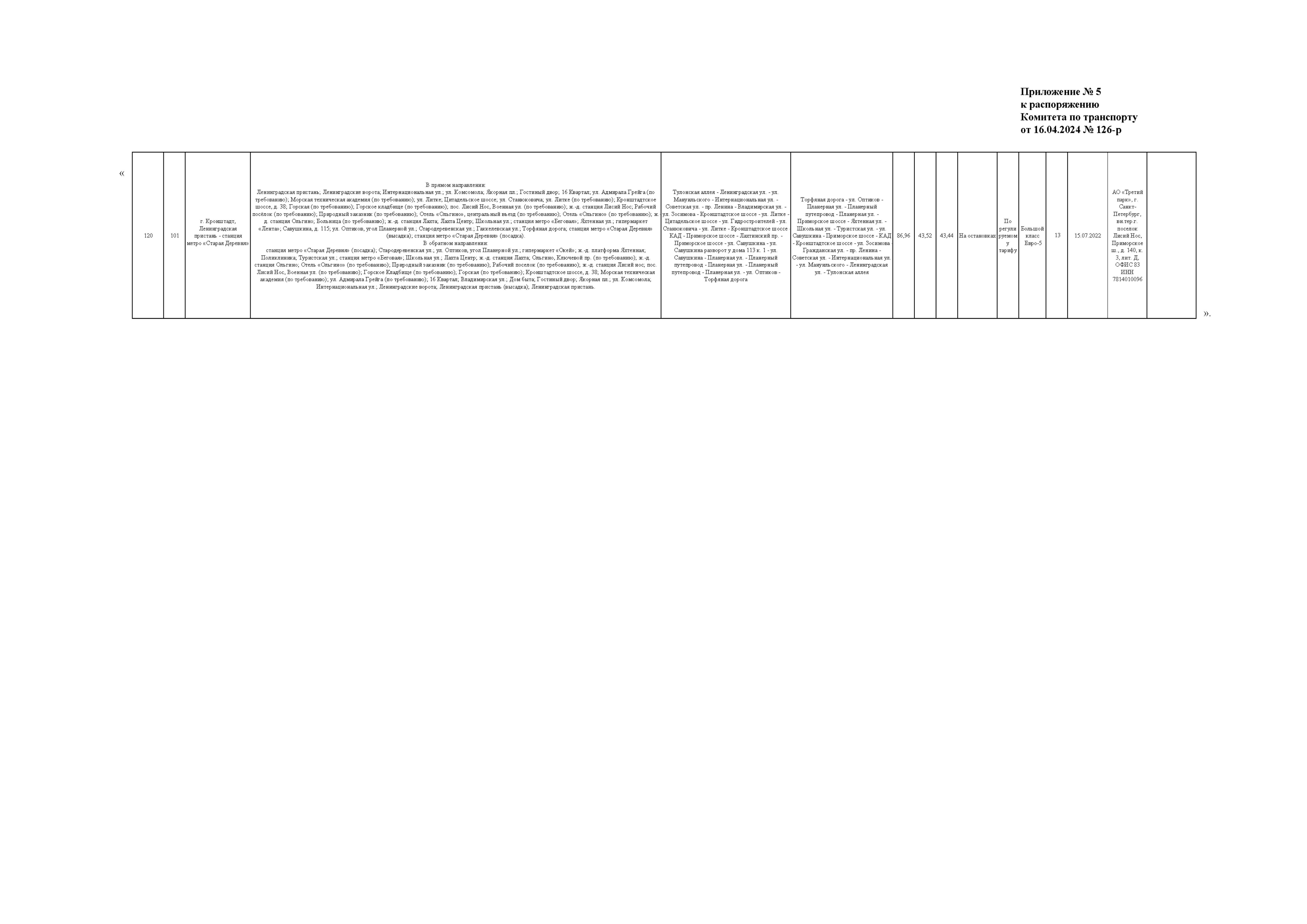Распоряжение Комитета по транспорту Санкт-Петербурга от 16.04.2024 № 126-р