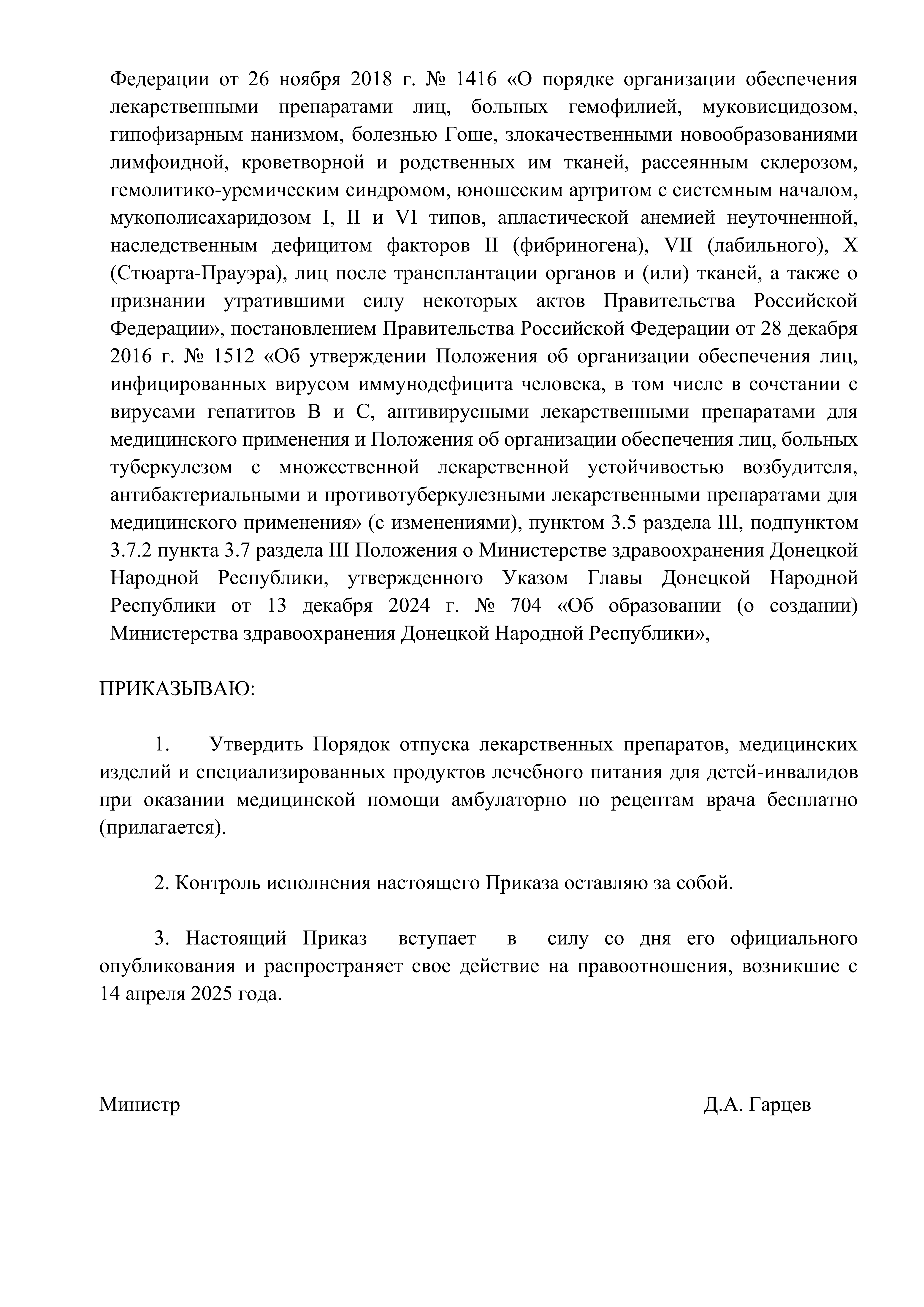 Приказ Министерства здравоохранения Донецкой Народной Республики от 30.04.2025 № 922