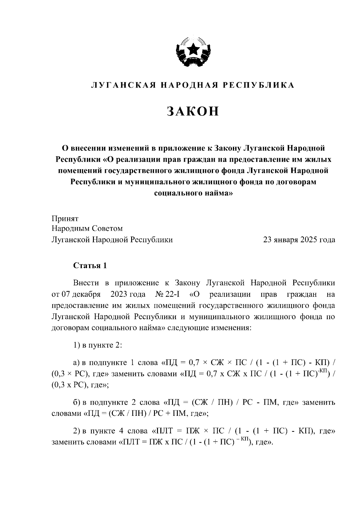 Закон Луганской Народной Республики от 23.01.2025 № 130-I