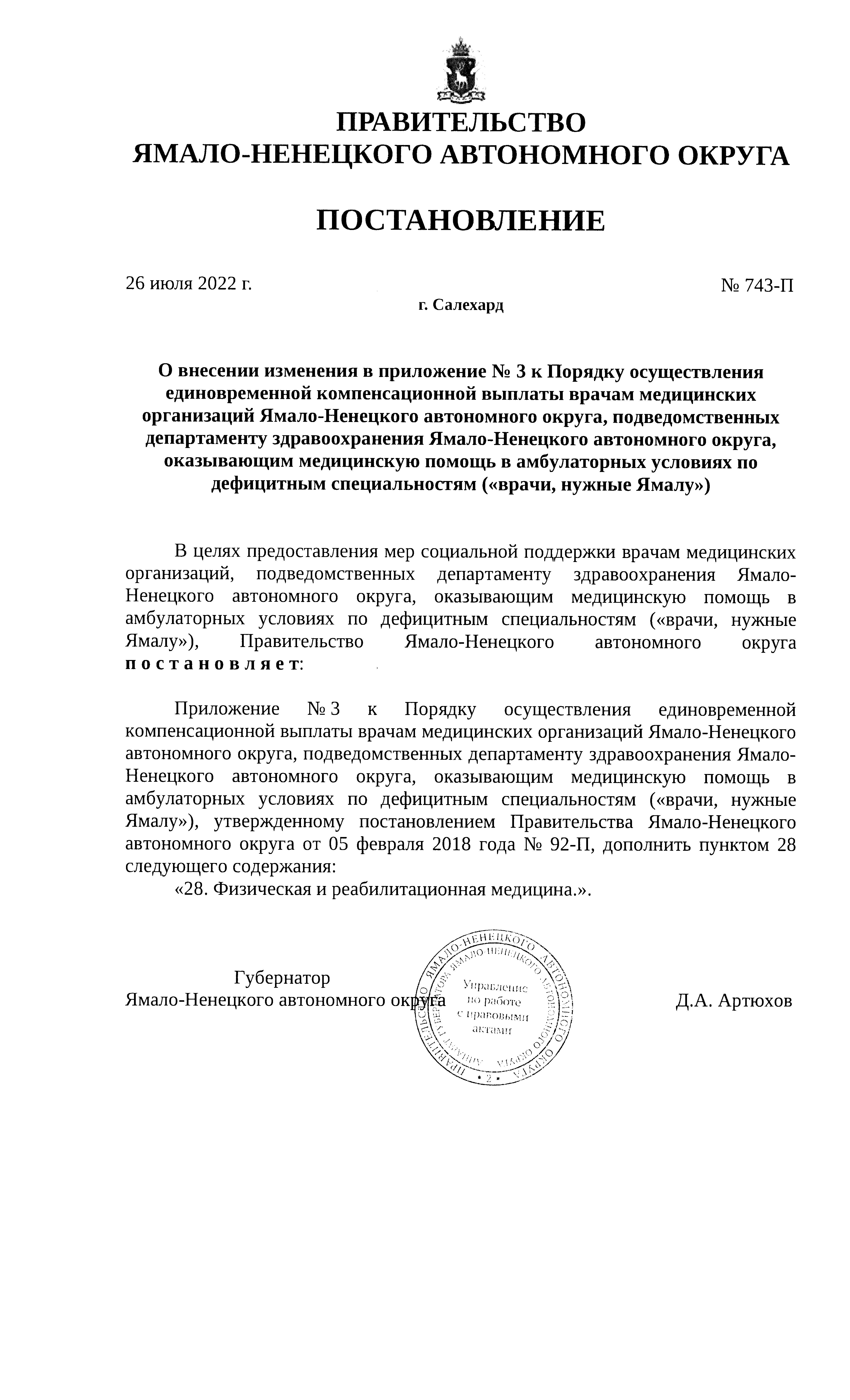 Постановление Правительства Ямало-Ненецкого автономного округа от 26.07.2022 № 743-П